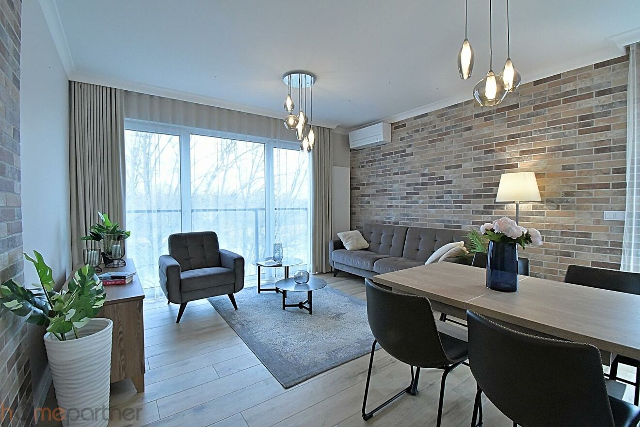 The entire space is cohesive, aesthetic, and highly functional. A beautiful riverside development directly on the Oder River, with boulevards, a marina, recreational areas, ideal exposure, and large windows that flood the interior with light.