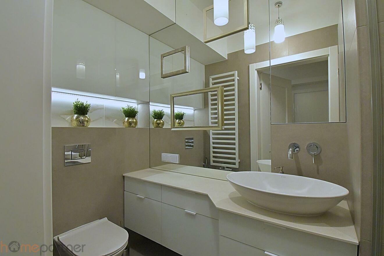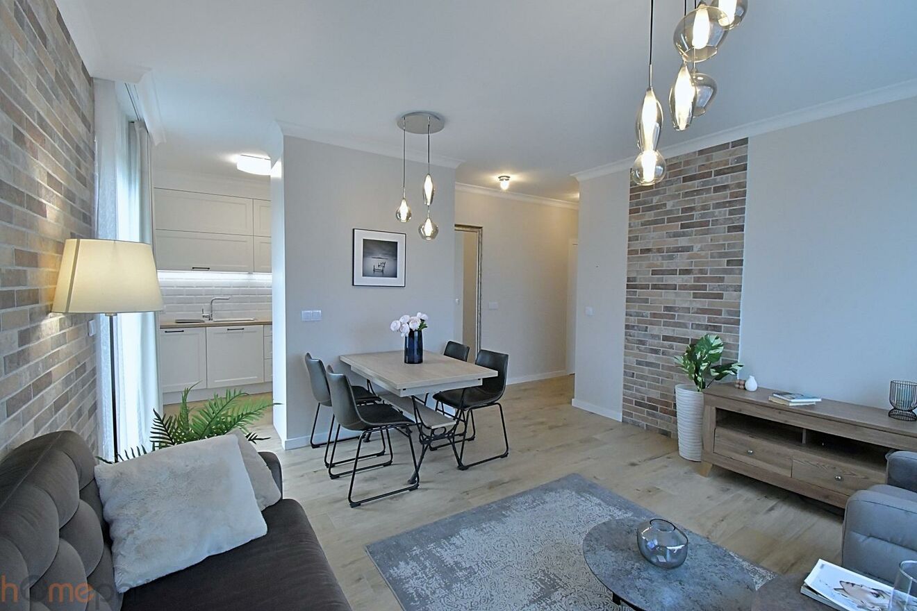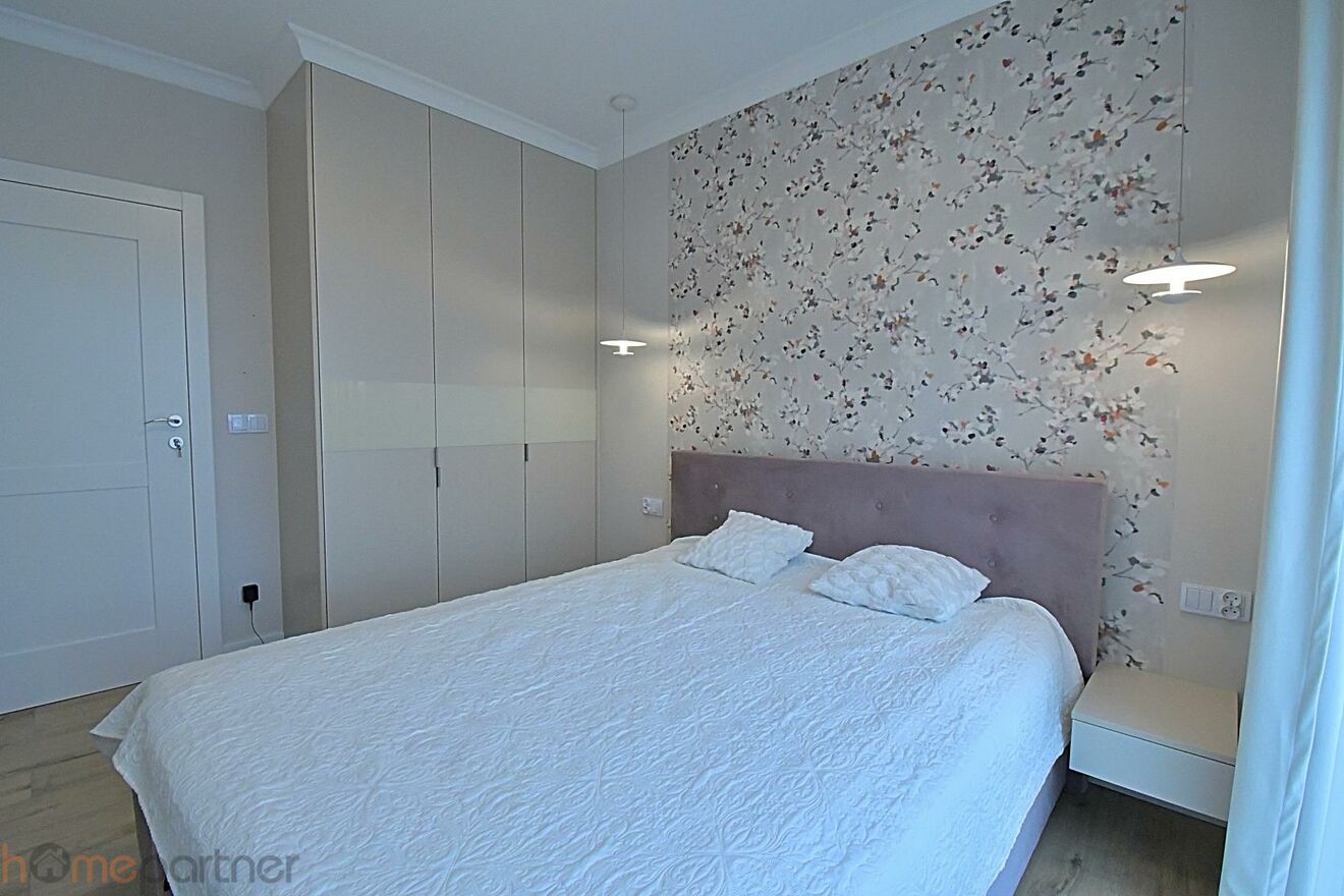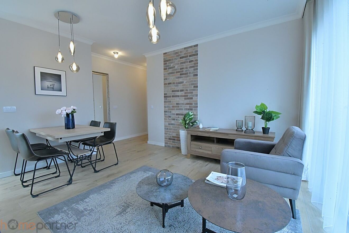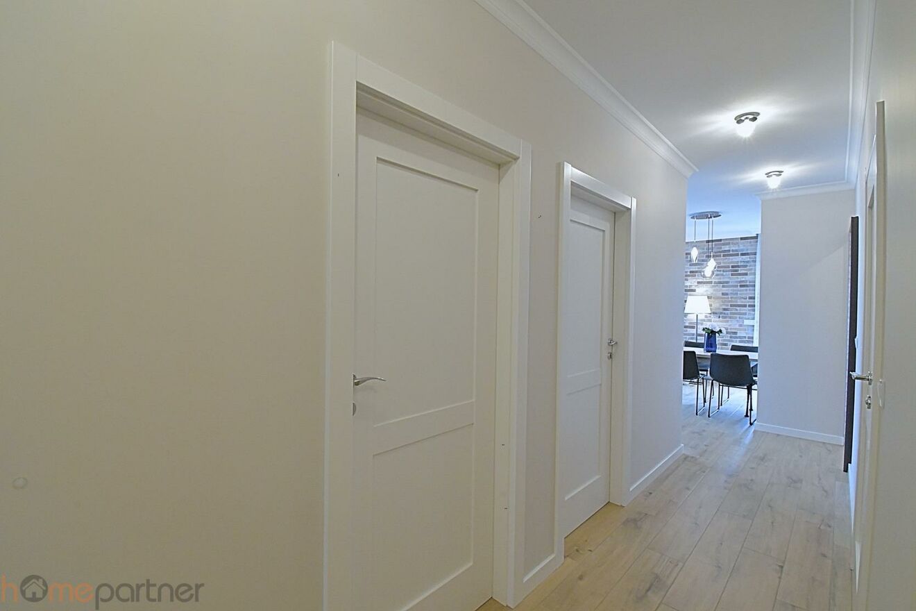 Mieszkanie wykończone w podwyższonym standardzie, gotowe do zamieszkania: jasna, nowoczesna kolorystyka, starannie wykończone ściany i sufity, wysokiej jakości materiały wykończeniowe, nowoczesna zabudowa kuchenna, eleganckie meble i dodatki, duże okna zapewniające doskonałe doświetlenie wnętrz. Całość tworzy spójną, estetyczną i bardzo funkcjonalną przestrzeń.