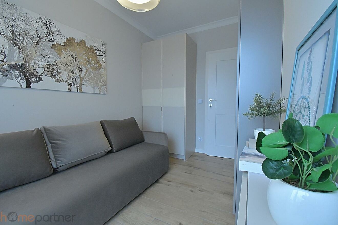 Mieszkanie posiada dwie niezależne sypialnie: główną sypialnię z dużym łóżkiem oraz szafą, drugą sypialnię, idealną jako pokój dziecięcy, gabinet lub pokój gościnny.