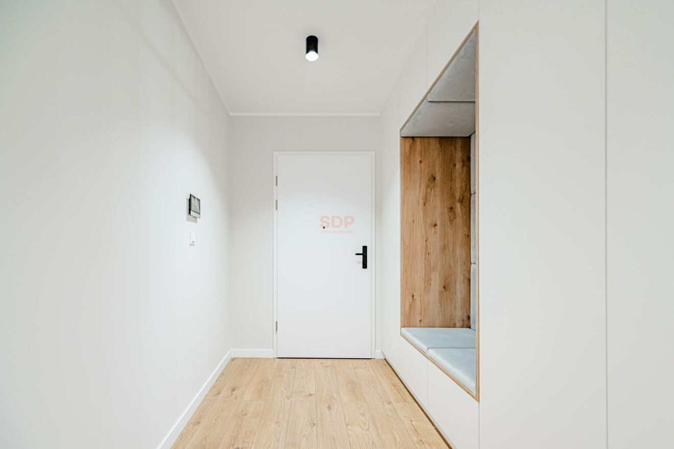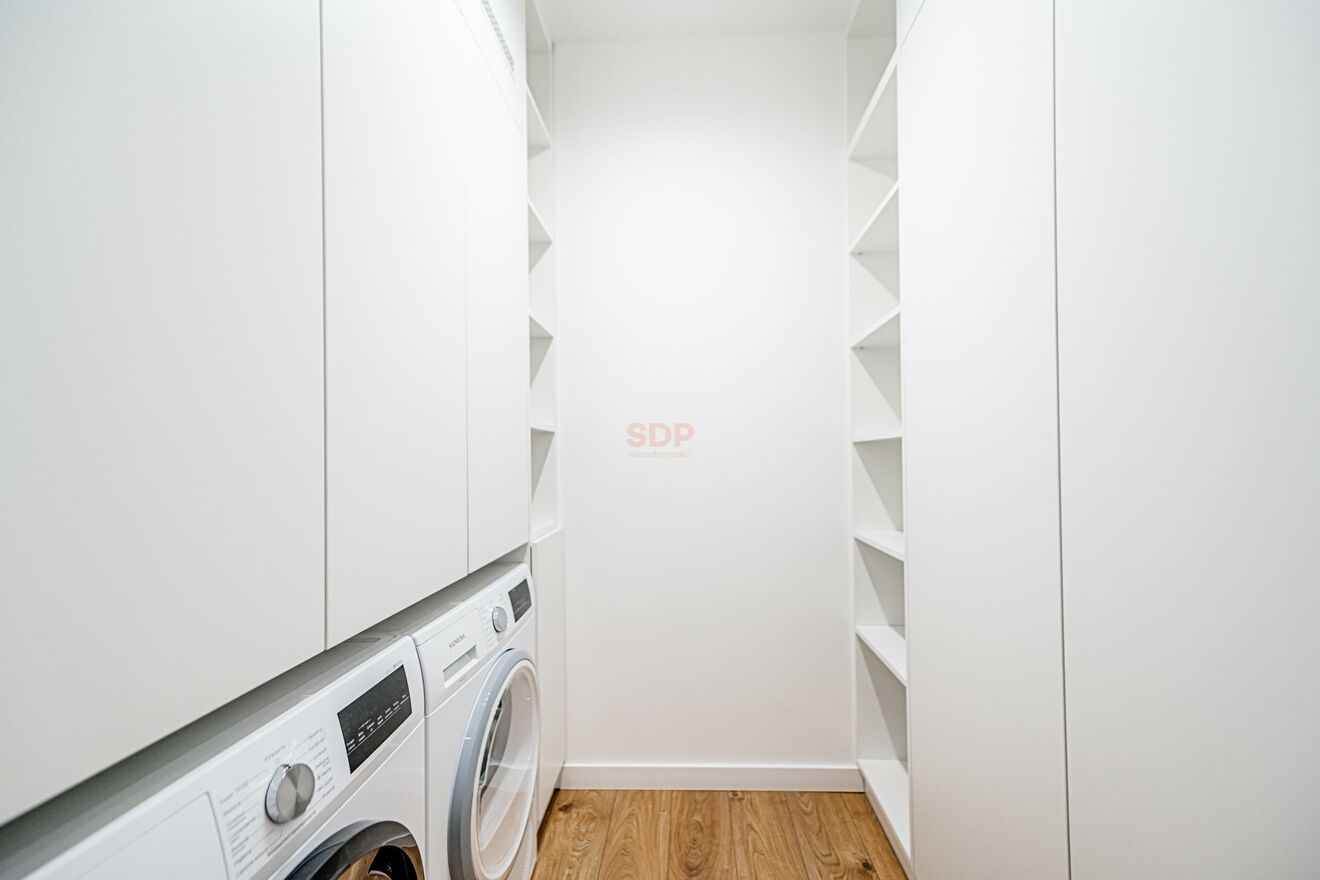 The apartment includes a parking space in the building's garage (additional fee: PLN 250/month). The property has windows facing west. The building is equipped with a silent elevator that goes directly to the parking area, 24-hour security and monitoring.