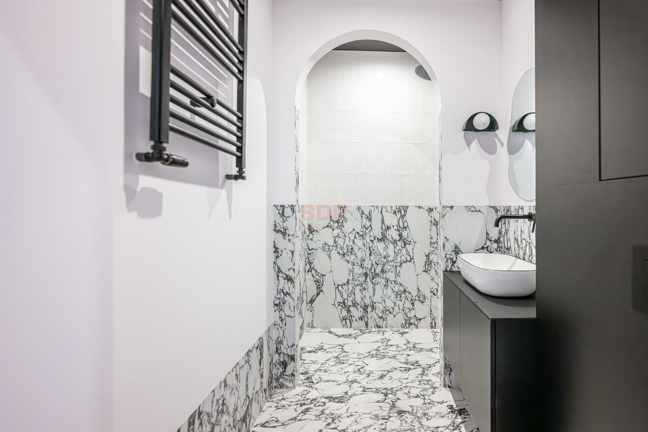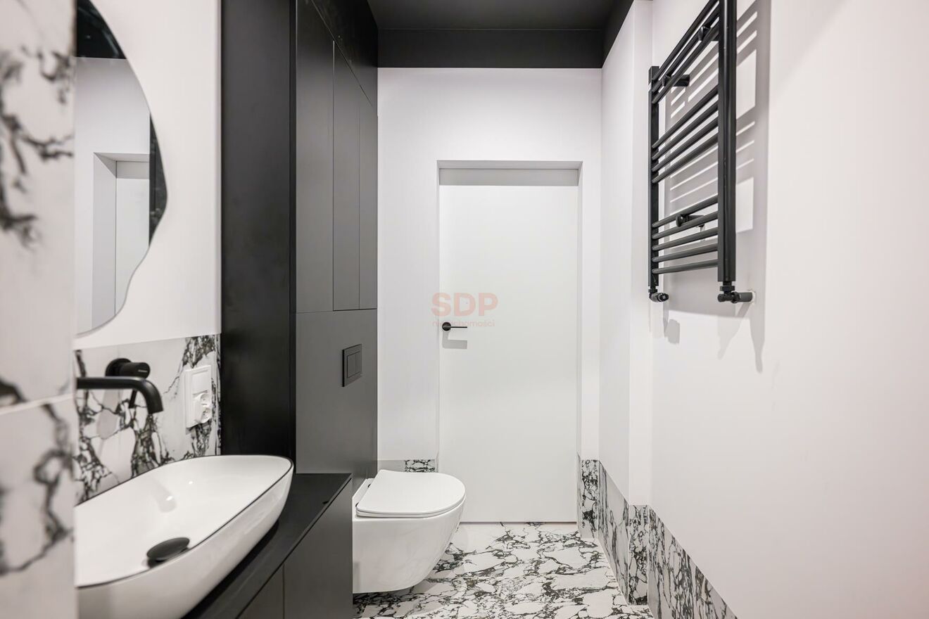 Mieszkanie przeszło gruntowny remont. Zostało doprowadzone do stanu deweloperskiego, wymieniono tu wszystkie instalacje, wykonano nową posadzkę anhydrytową ze styropianem. Następnie wykończono je według przemyślanego projektu, wysokiej klasy materiałach - m.in podłogi dębowe, olejowane.
