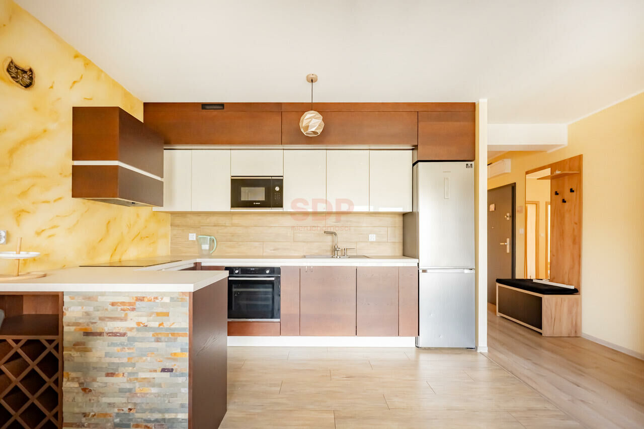 I highly recommend a three-room apartment for rent with an area of 62 m2.The property is located on the seventh floor of an eight-story building in a prestigious investment, near the Wrocław Market Square. The apartment is fully equipped and available for rent for a minimum of twelve months. The property is two-sided with windows facing east and west. The building is equipped with silent elevators going down to the parking zone, round the clock security and monitoring. On the internal patio, dedicated for the exclusive use of residents, there is a playground and a relaxation zone with rich plantings.