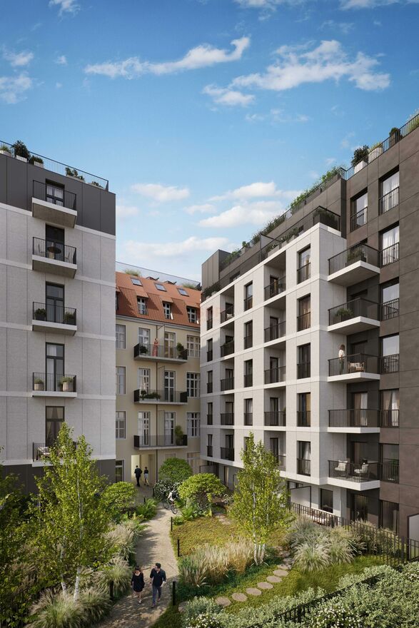 Zamknięte osiedle łącznie 5 budynków (nowych i zrewitalizowanych kamienic pofabrycznych oraz mieszkalnych) wplecione w śródmiejską tkankę Wrocławia.