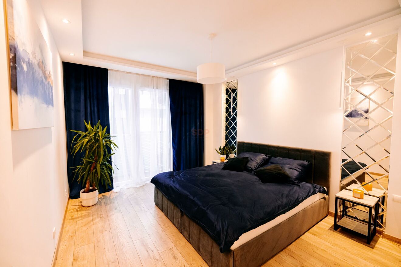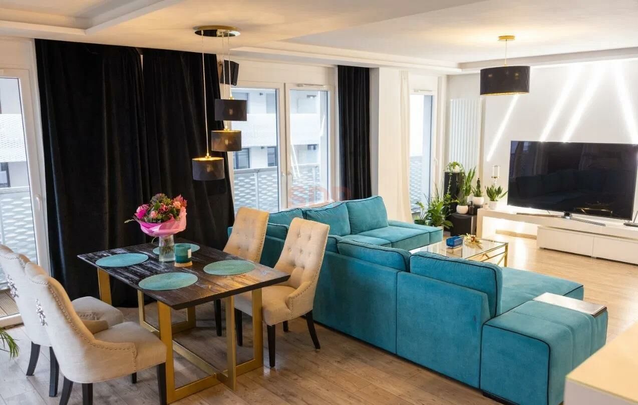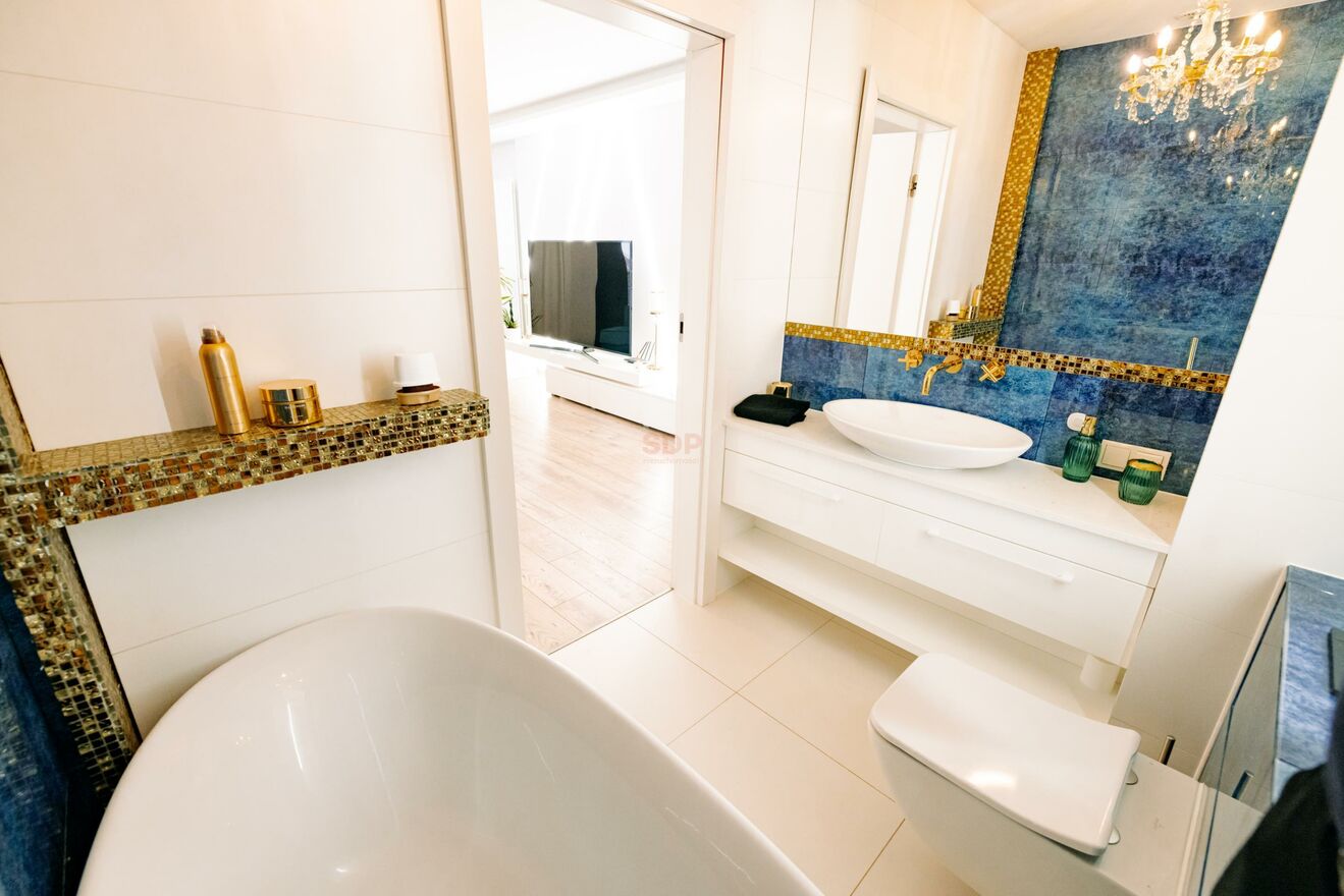 Apartament wykończony w wysokim standardzie, z dbałością o detale i funkcjonalność. Wyposażony m.in. w: