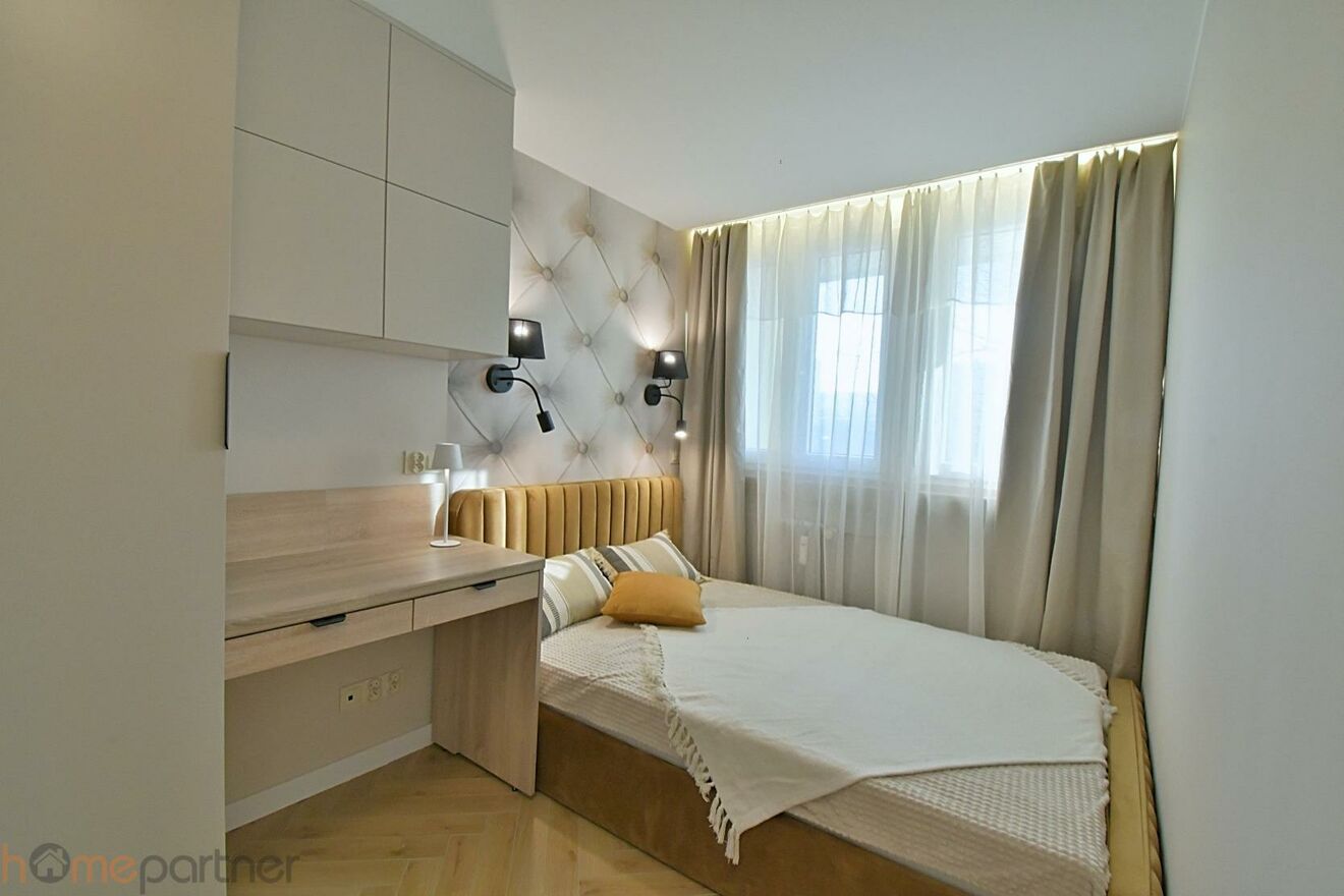 Mieszkanie jest umeblowane i nowocześnie zaaranżowane, wykończone materiałami wysokiej klasy, meble na wymiar. Kuchnia w zabudowie wyposażona w lodówko-zamrażarkę, płytę indukcyjną, okap. Łazienka z natryskiem, pralka na wyposażeniu.