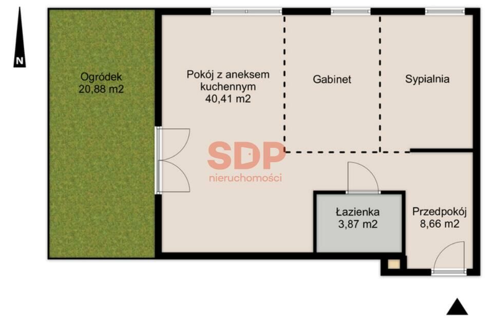 Dodatkowo do mieszkania przynależy duży ogródek o powierzchni 20,88 m.