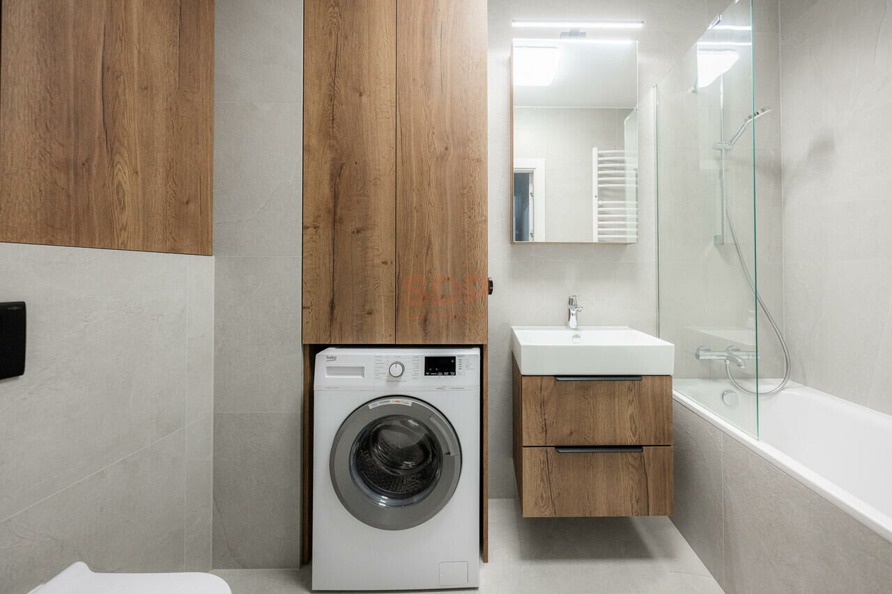 Opis mieszkania:Lokal znajduje się na 2. piętrze w nowoczesnym budynku z windą. Składa się z przestronnego salonu z aneksem kuchennym wyposażonym w wysokiej klasy sprzęt AGD, sypialni z dużym łóżkiem i pojemną szafą, pokojem oraz łazienki.