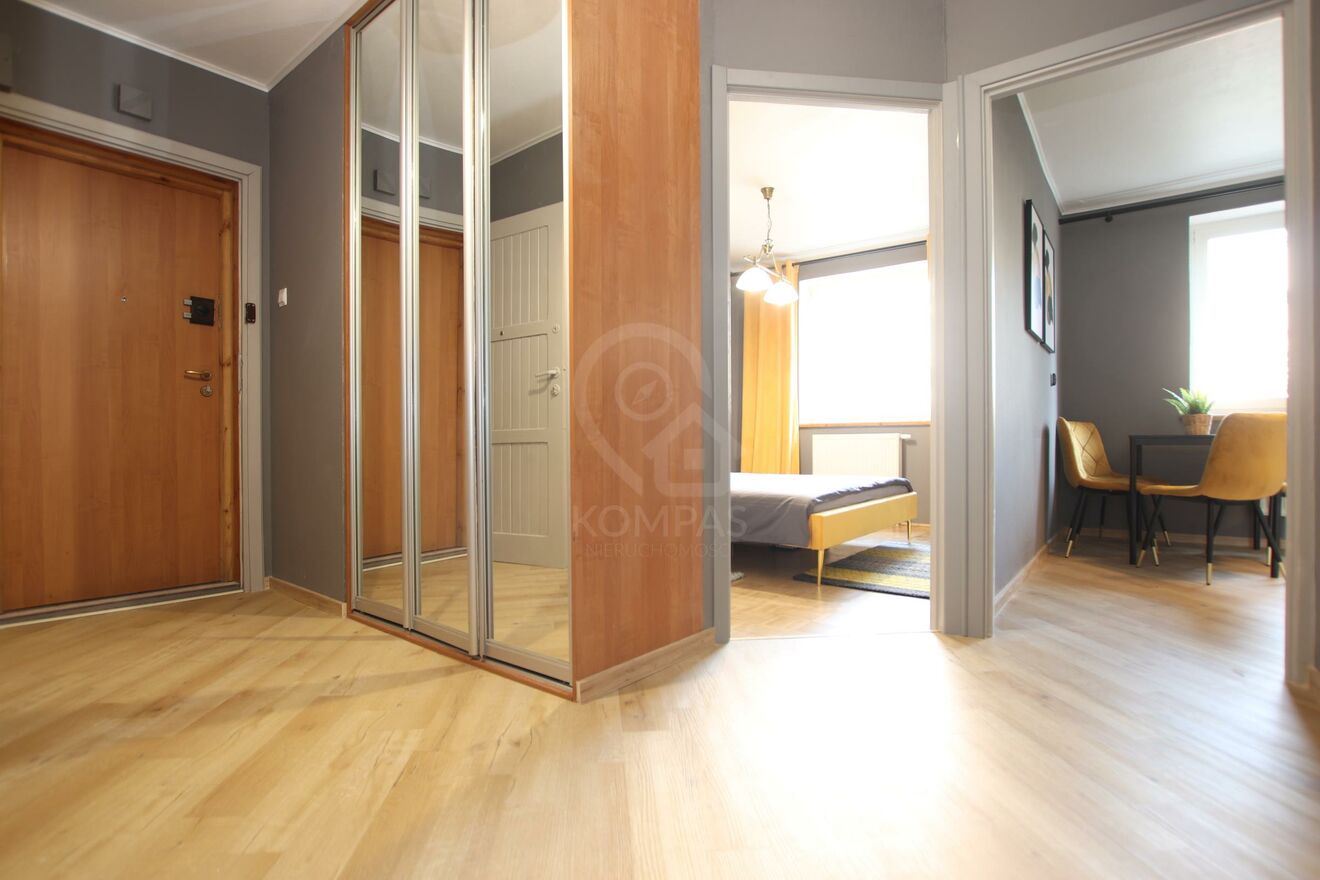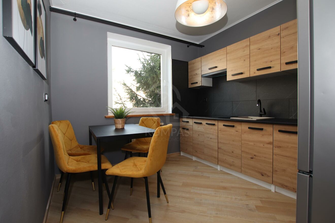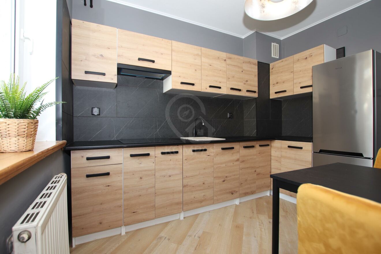 Mieszkanie po remoncie w 2023 roku. Kuchnia wyposażona jest w meble na wymiar wraz ze sprzętem AGD. W pokojach na ścianach gładź, na podłodze wycyklinowany parkiet. W przedpokoju i kuchni nowe panele. Okna PCV. Taras położony od wewnętrznej, zamkniętej strony osiedla. Meble: Salon z wygodnym zestawem wypoczynkowym. W sypialni komfortowe łóżko 160x200. W przedpokoju pojemna szafa typu komandor. Budynek z 2000 roku, usytuowany w otoczeniu zabudowy wielorodzinnej i jednorodzinnej wewnątrz osiedla.