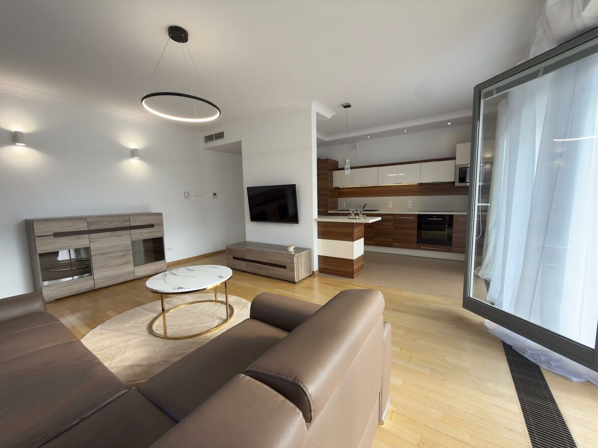 Elewacja z oknami od podłogi, od strony wschodniej i południowo -zachodniej. Mieszkanie komfortowo umeblowane i urządzone, użyte materiały są najwyższej jakości.
