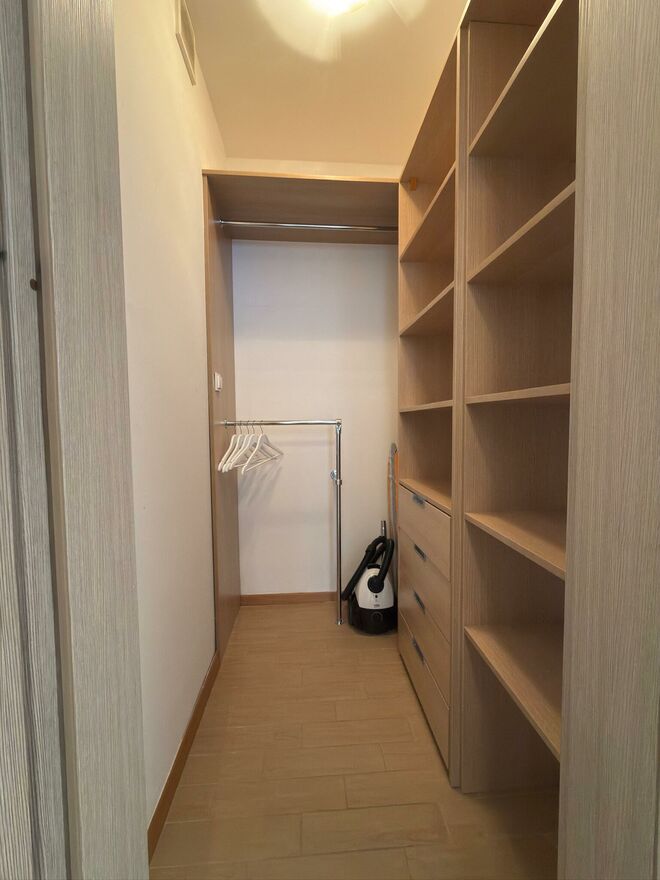 Elewacja z oknami od podłogi, od strony wschodniej i południowo -zachodniej. Mieszkanie komfortowo umeblowane i urządzone, użyte materiały są najwyższej jakości.