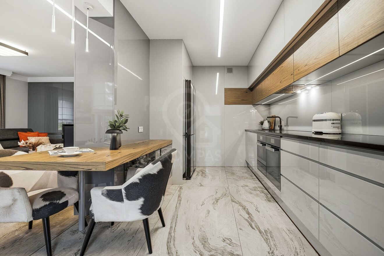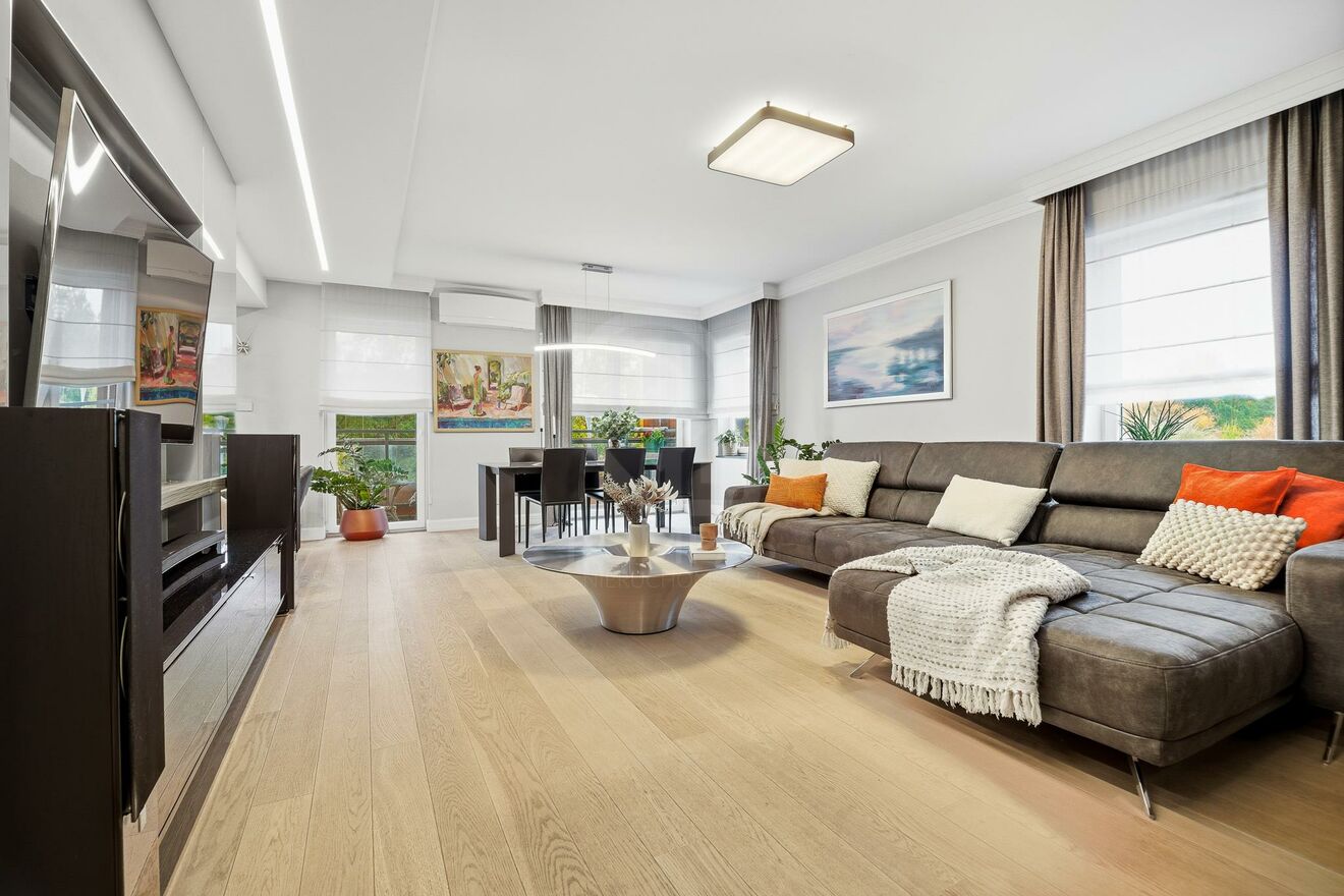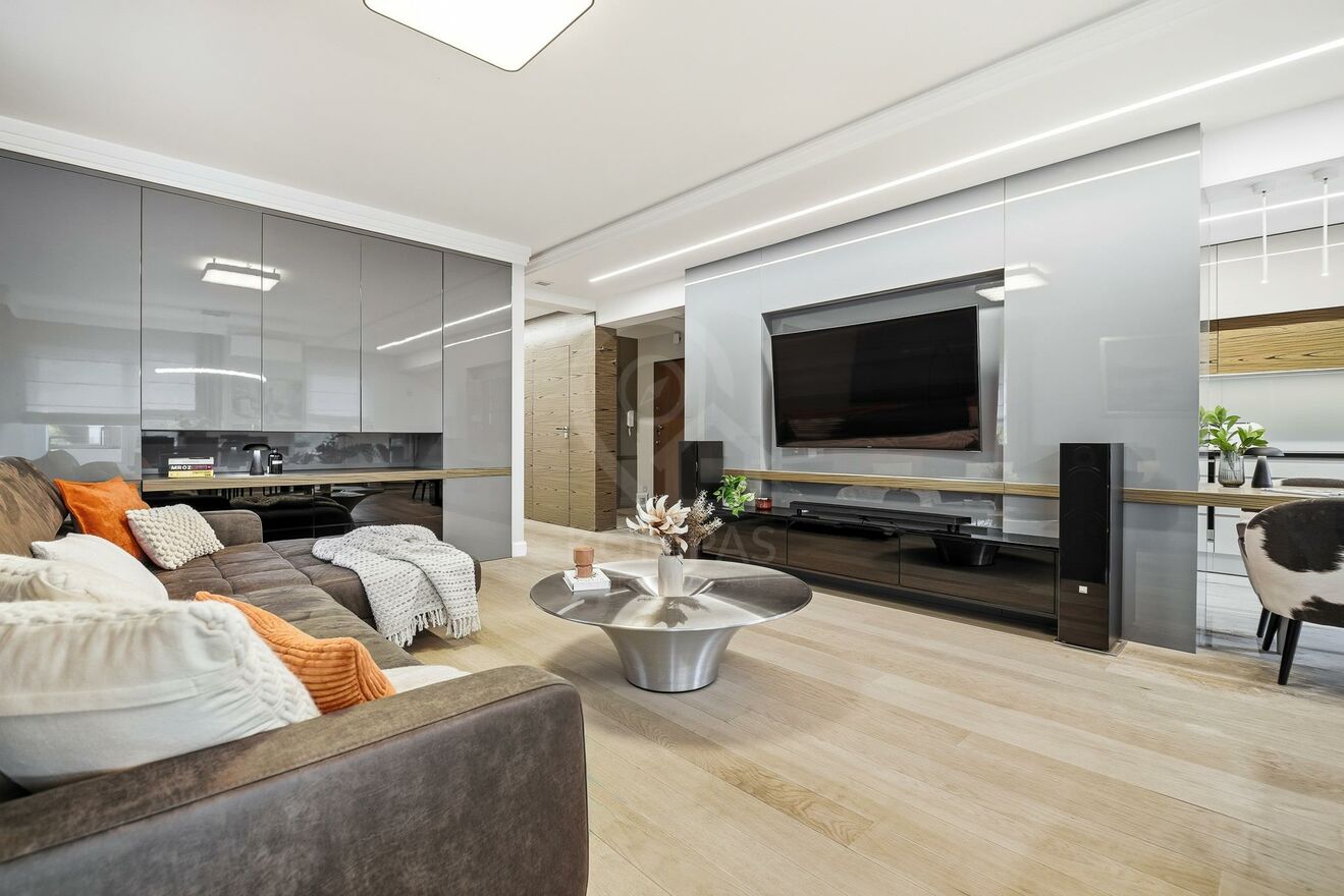 Mieszkanie jest gotowe do zamieszkania bez dodatkowych kosztów. Wszystkie pokoje są klimatyzowane, przemyślane oświetlenie nadaje całości elegancki, nowoczesny charakter. Lokal poza meblami w zabudowie, posiada dużą garderobę, co zapewnia mnóstwo miejsca na przechowywanie i pomoże w zachowaniu ładu.