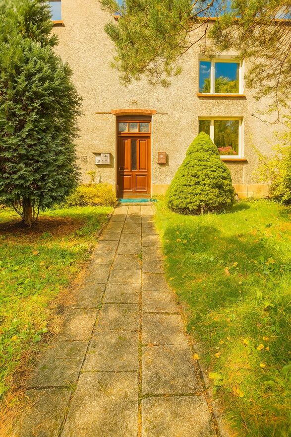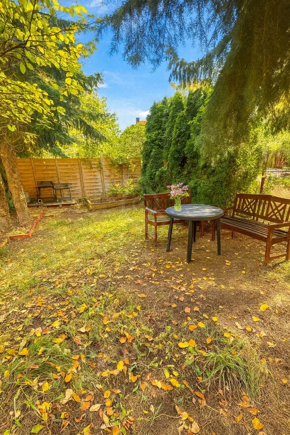- duży ogród z tyłu budynku, pełen zieleni i starych nasadzeń (jabłoń, wiśnia, winorośl); idealne miejsce na grill lub strefę relaksu,