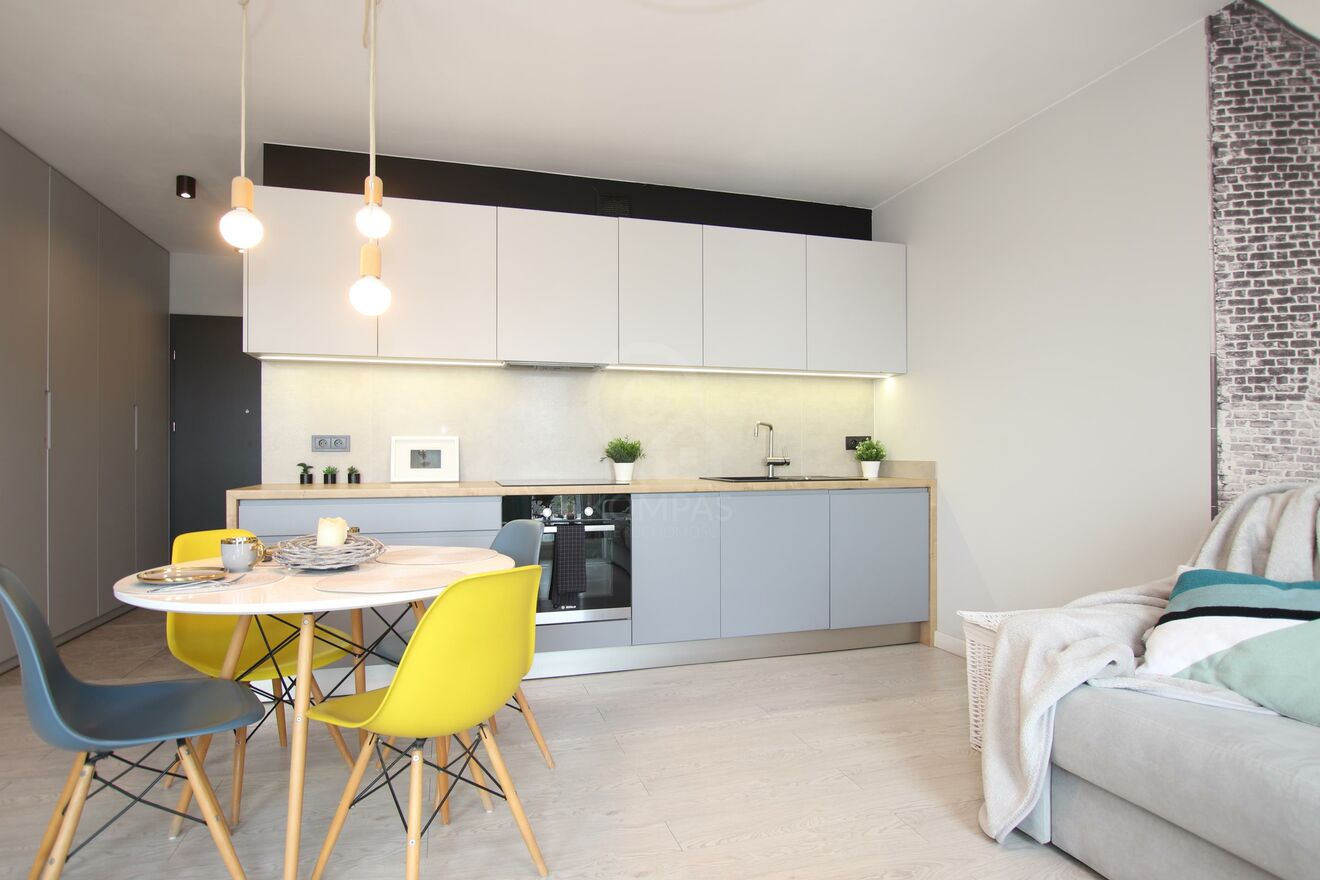 Kawalerka o powierzchni 32.78 m położona jest na 8. piętrze nowoczesnego bloku. Mieszkanie nie sąsiaduje bezpośrednio z ruchliwą ulicą oraz znajduje się od wewnętrznej strony budynku, co zapewnia ciszę i spokój, mimo lokalizacji w centrum miasta. Lokal został zaprojektowany przez projektanta wnętrz, dzięki czemu wewnątrz panuje harmonia i spójność stylów. Zastosowane rozwiązania sprawiają, że kawalerka jest niezwykle ustawna, komfortowa i pełna naturalnego światła.