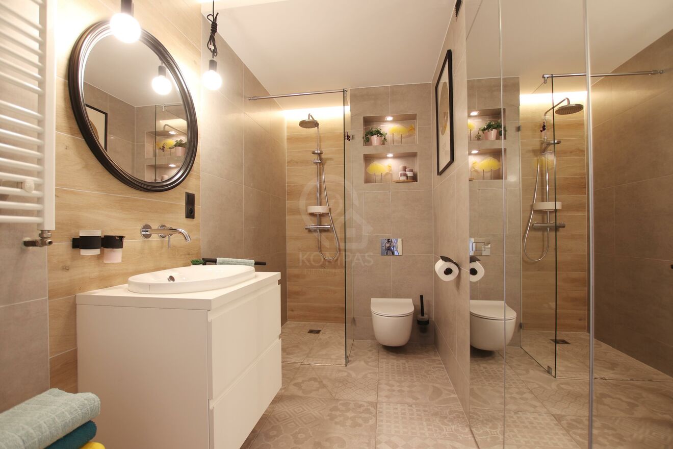 - Kabina prysznicowa typu Walk-in, zapewniająca wygodę użytkowania