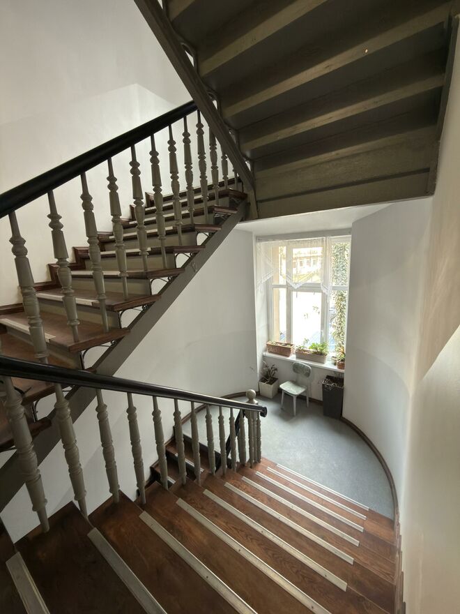 Klatka schodowa po remoncie, czysta i pachnąca, mieszkania wszystkie prywatne, obok lokalu renomowany gabinet dietetyczny.