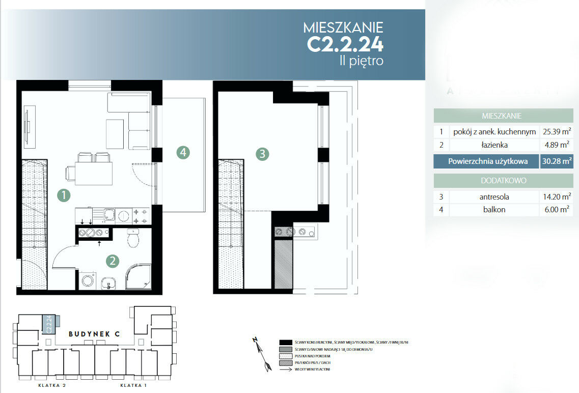 Zapraszam do zakupu pięknego mieszkania dwupoziomowego w zielonej i cichej okolicy a jednocześnie z dobrą komunikacją i dobrym dojazdem do obwodnicy Wrocławia. Mieszkanie idealne pod inwestycję lub zamieszkania. Kompleks składa się z trzech nowoczesnych budynków, oferujących mieszkania o różnorodnych powierzchniach, od 25 m² do 103 m². Każde mieszkanie w kompleksie ma dostęp do prywatnej przestrzeni zewnętrznej — balkonów lub ogrodów, idealnych do relaksu i spędzania czasu na świeżym powietrzu. Ogrody, przynależące do lokali na parterze, oferują mieszkańcom możliwość stworzenia wyjątkowej strefy wypoczynku w otoczeniu natury.Prezentowane mieszkanie ma powierzchnię 44,48m2 i znajduje się na drugim piętrze w czterokondygnacyjnym budynku a jego główne cechy to- salon z aneksem kuchennym o powierzchni 25,39m2 z wyjściem na wygodny balkon o powierzchni 6m2, łazienka o powierzchni 4,89m2, antresola o powierzchni 14,2m2