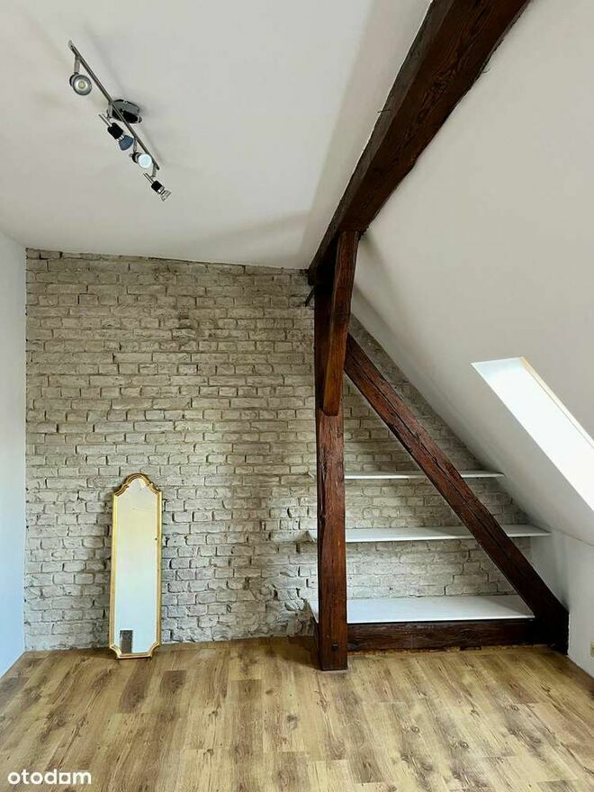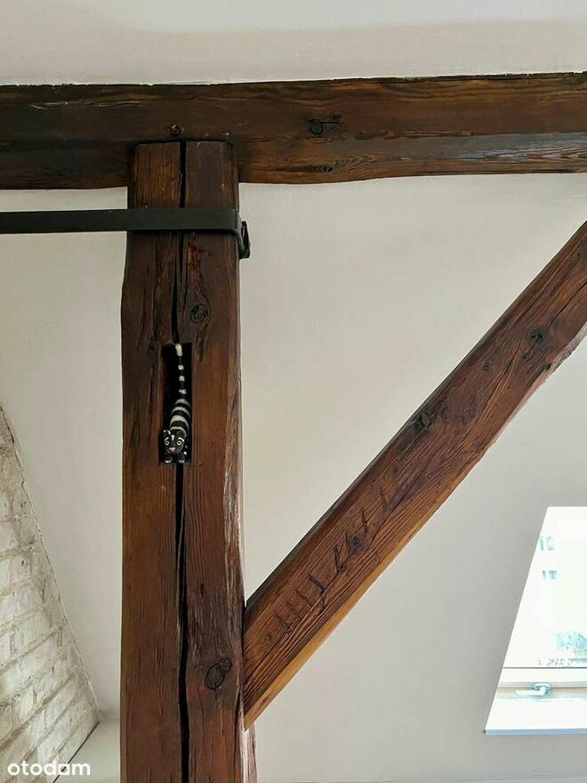 * Pięknie wyeksponowana, bejcowana konstrukcja dachu – unikalny klimat poddasza