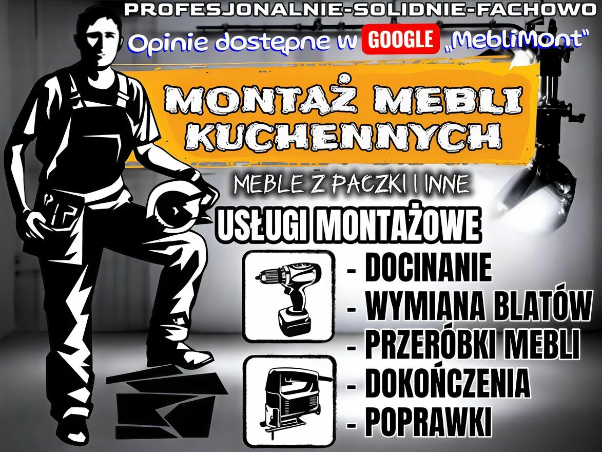 Profesjonalny montaż mebli kuchennych — szybko, solidnie, bez stresu!Oferuję kompleksowy montaż mebli kuchennych wszystkich marek: IKEA, Leroy Merlin, Castorama, Agata Meble oraz kuchni pod wymiar, świadczę również usługi montażowe i stolarskie.