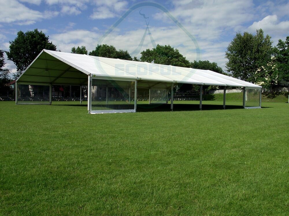 HALE NAMIOTOWE – interesujące rozwiązanie dla klientów zainteresowanych szybkim postawieniem pomieszczenia magazynowego, handlowego lub gastronomicznego. Lekka, aluminiowa konstrukcja, łączona na śruby i bolce, pokryta poliestrem powlekanym PVC, nie wymaga uzyskiwania pozwoleń na budowę. Dowolna wielkość, wysoka estetyka wykonania, oraz szeroka gama wyposażenia dodatkowego , daje możliwość szerokiego zakresu zastosowania. Standardowe szerokości, które oferuję nasza firma: 5m, 10m, 12,5m, 15m, 20m długość modułu 5m.