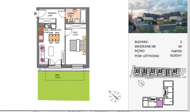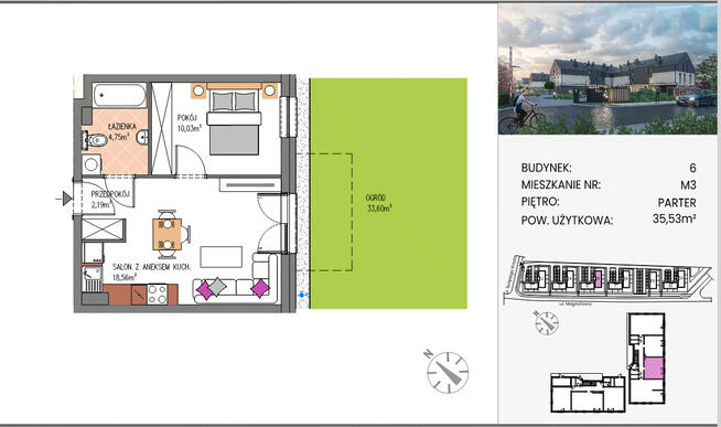 Miłoszyce | 46,5 m² | 3 pokoje | ogródek 40 m² | bezczynszowe + miejsce postojowe Nowoczesne, bezczynszowe mieszkanie z ...