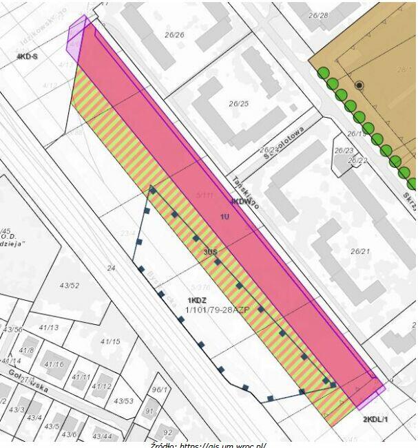 działka w kształcie prostokąta narożna 729m2 wydane warunki zabudowy na dom jednorodzinny Wrocław ul. ...