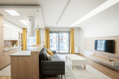 Mieszkanie jednopokojowe z aneksem kuchennym, sprzętem AGD, łazienką, internet światłowodowy po WiFi; powierzchnia 25m2, ...
