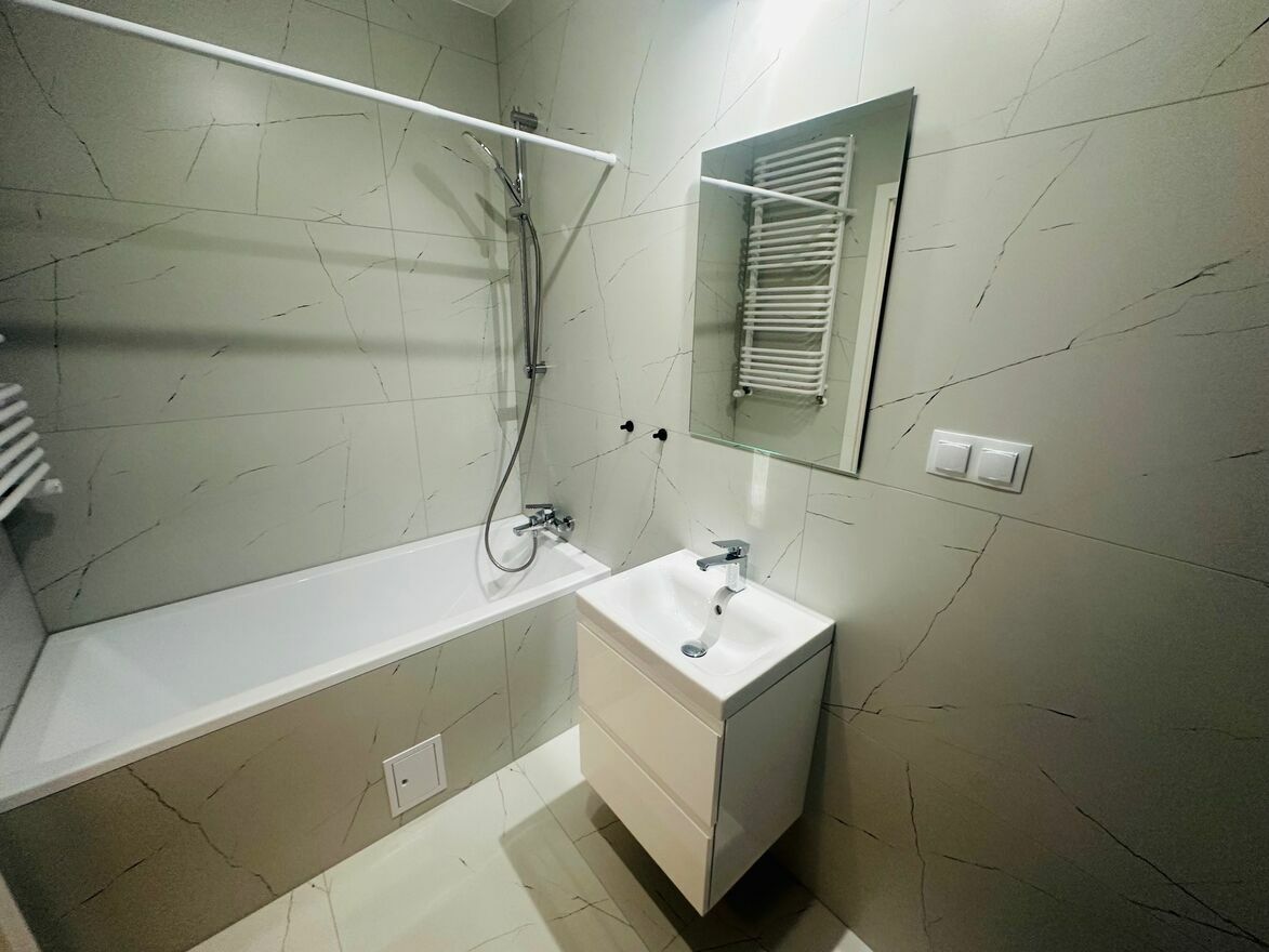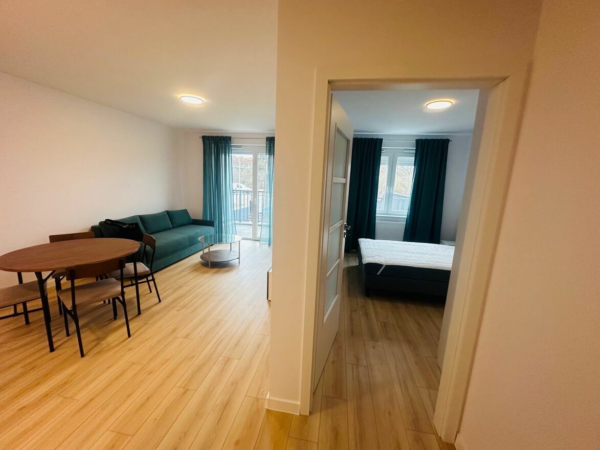 Mieszkanie nigdy wcześniej niezamieszkałe. Aneks kuchenny w zabudowie wraz z AGD, sypialnia z wygodnym łóżkiem oraz szafę. Łazienka z wanną, Przedpokój z dużą szafą w zabudowie.