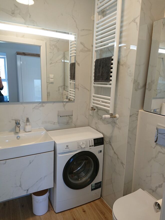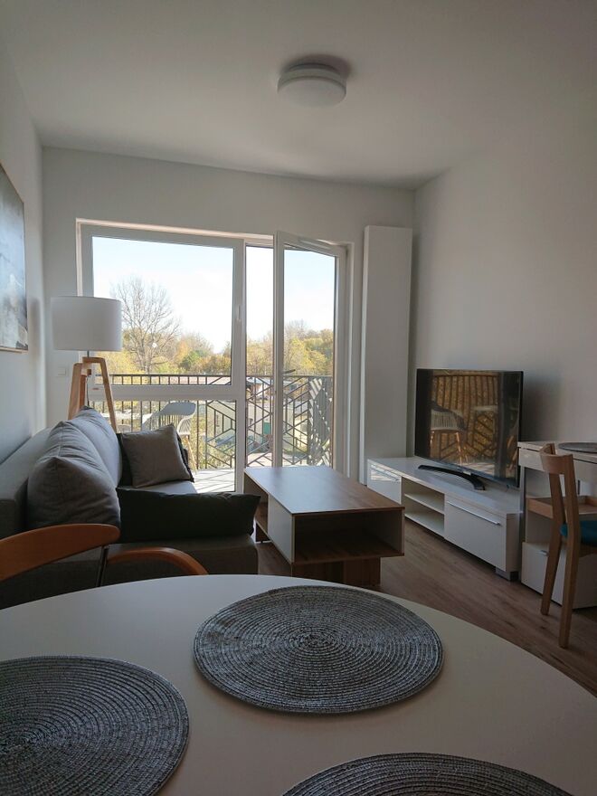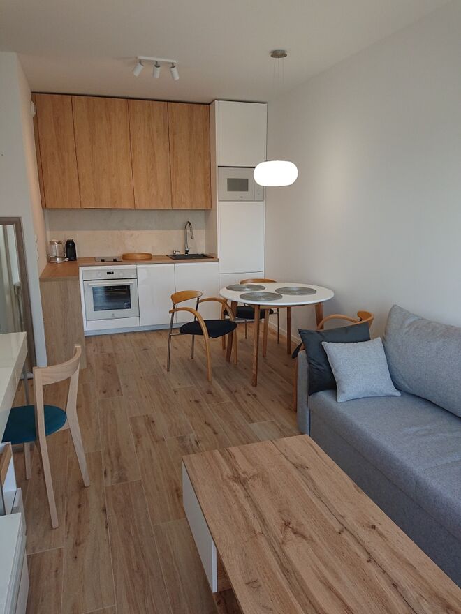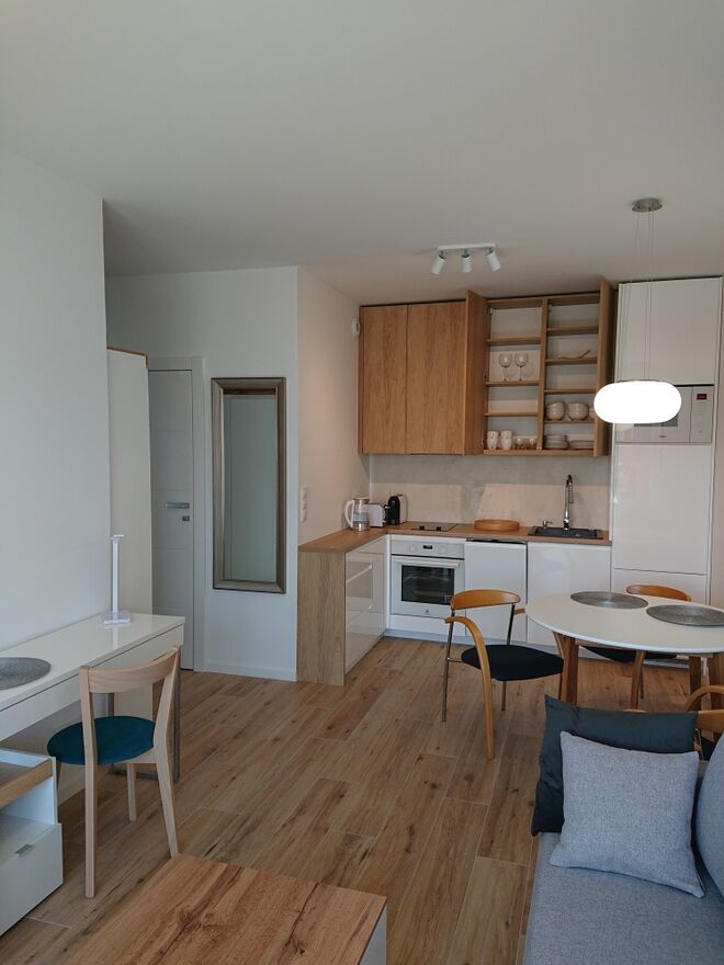 Mieszkanie jest w pełni umeblowane i wyposażone, gotowe do zamieszkania.