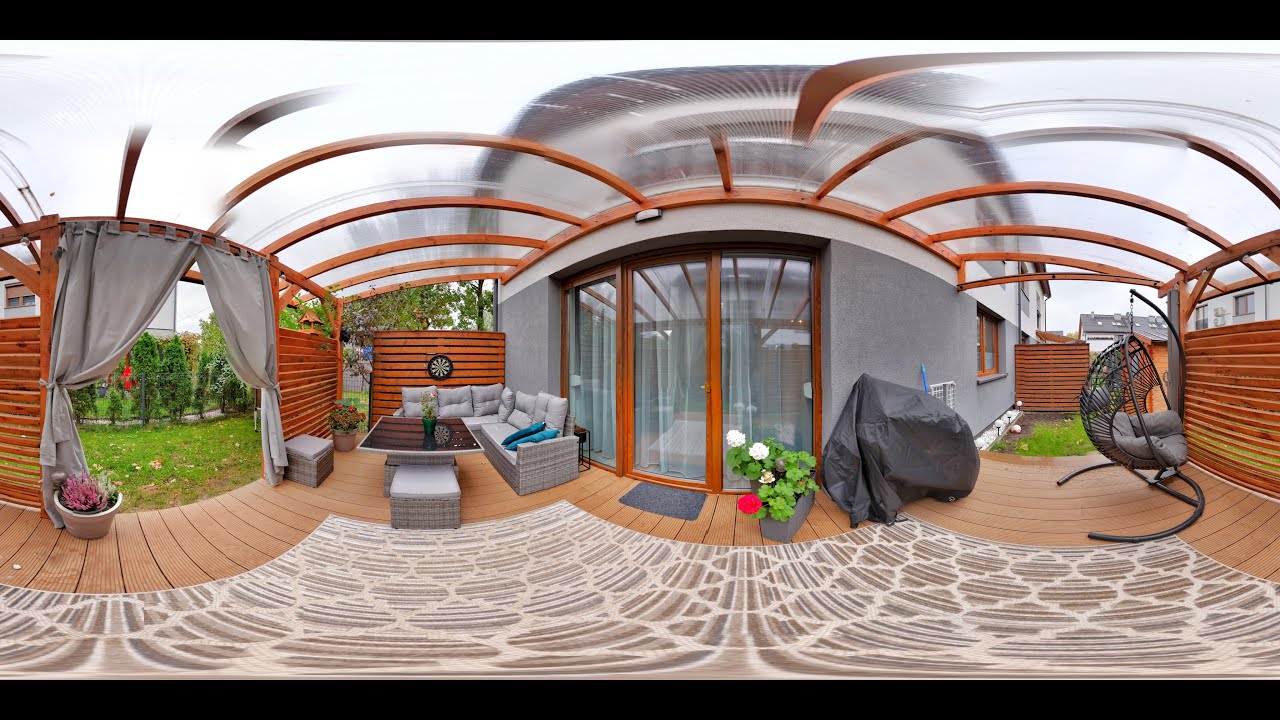 W ogródku zadaszony taras oraz domek narzędziowy.
