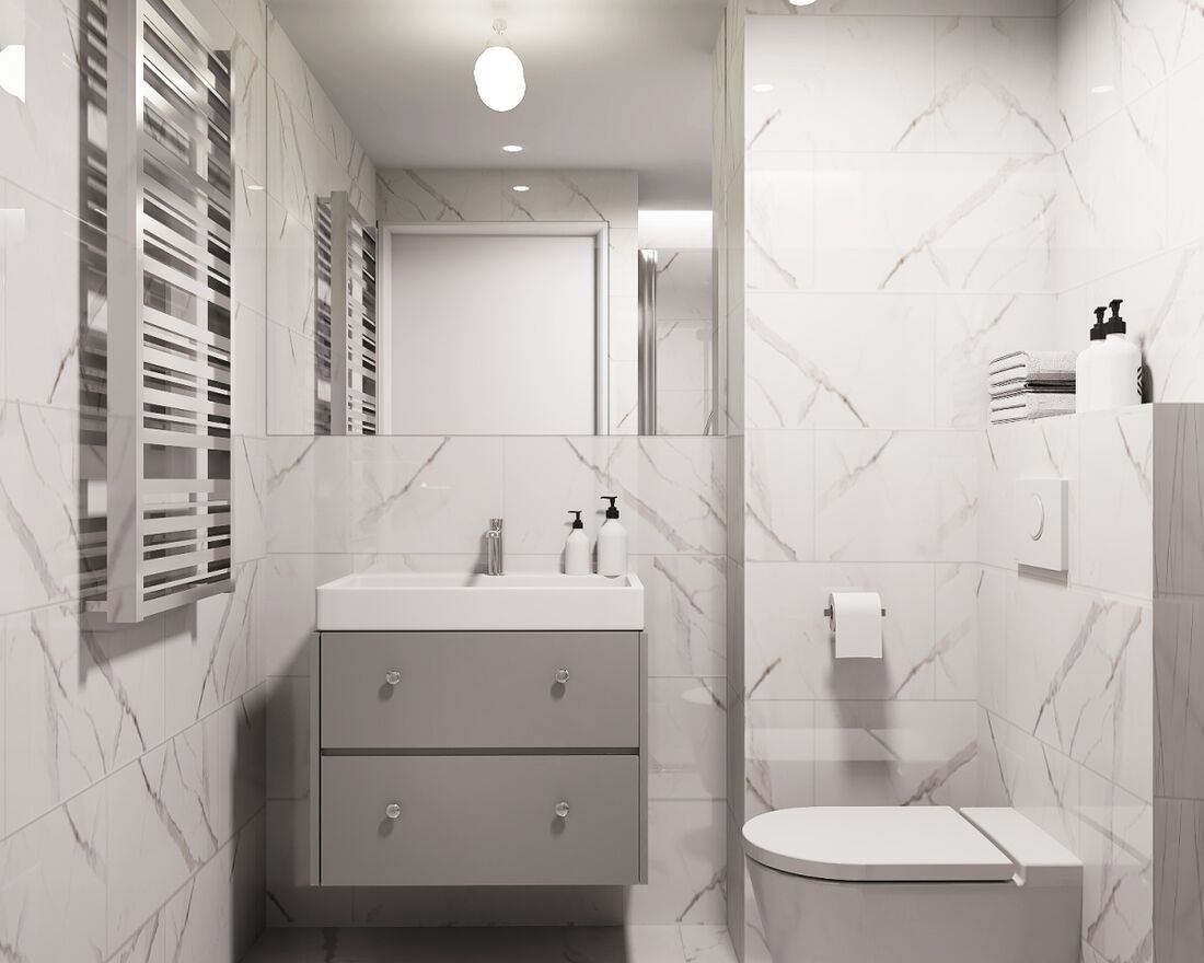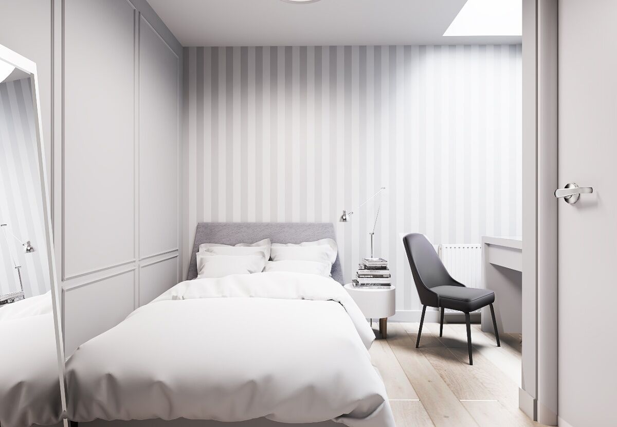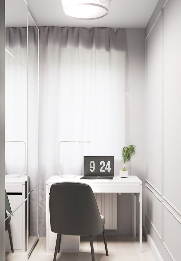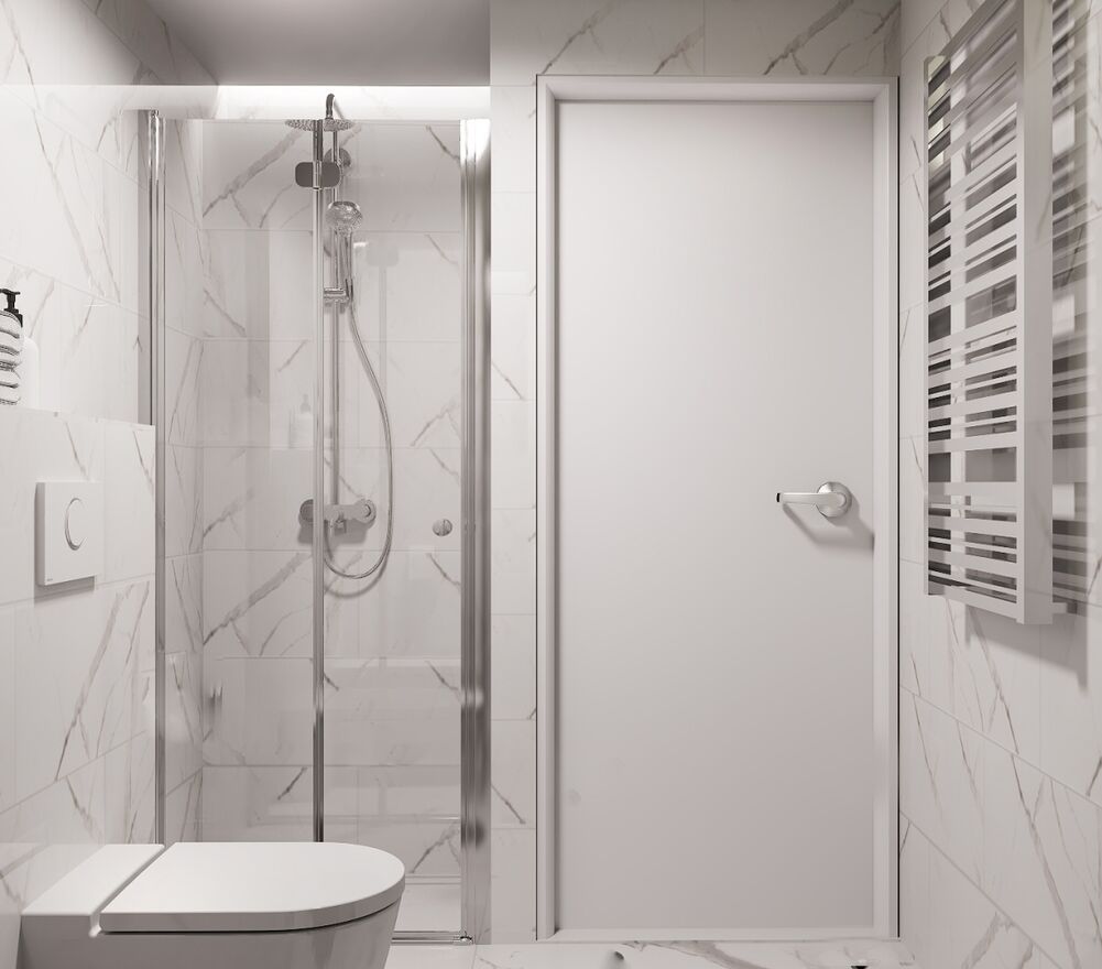 Zdjęcia przedstawiają wizualizację projektu wykończenia mieszkania.