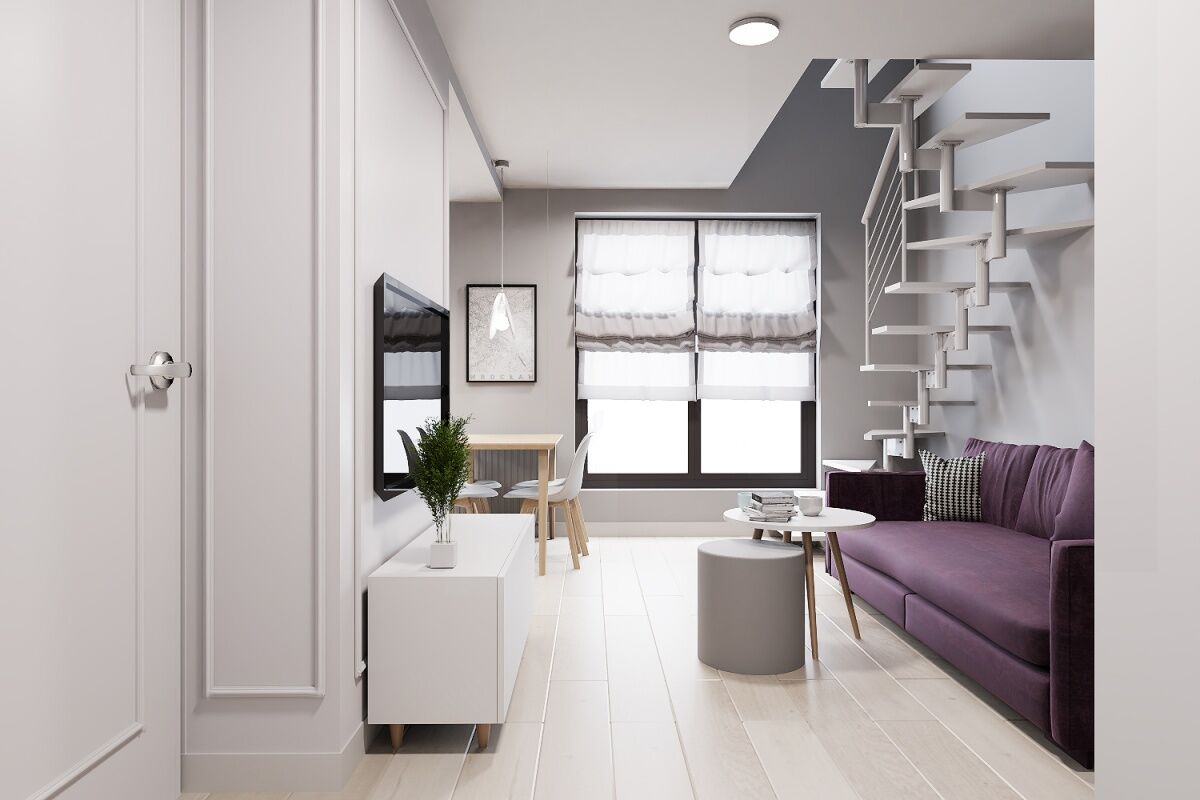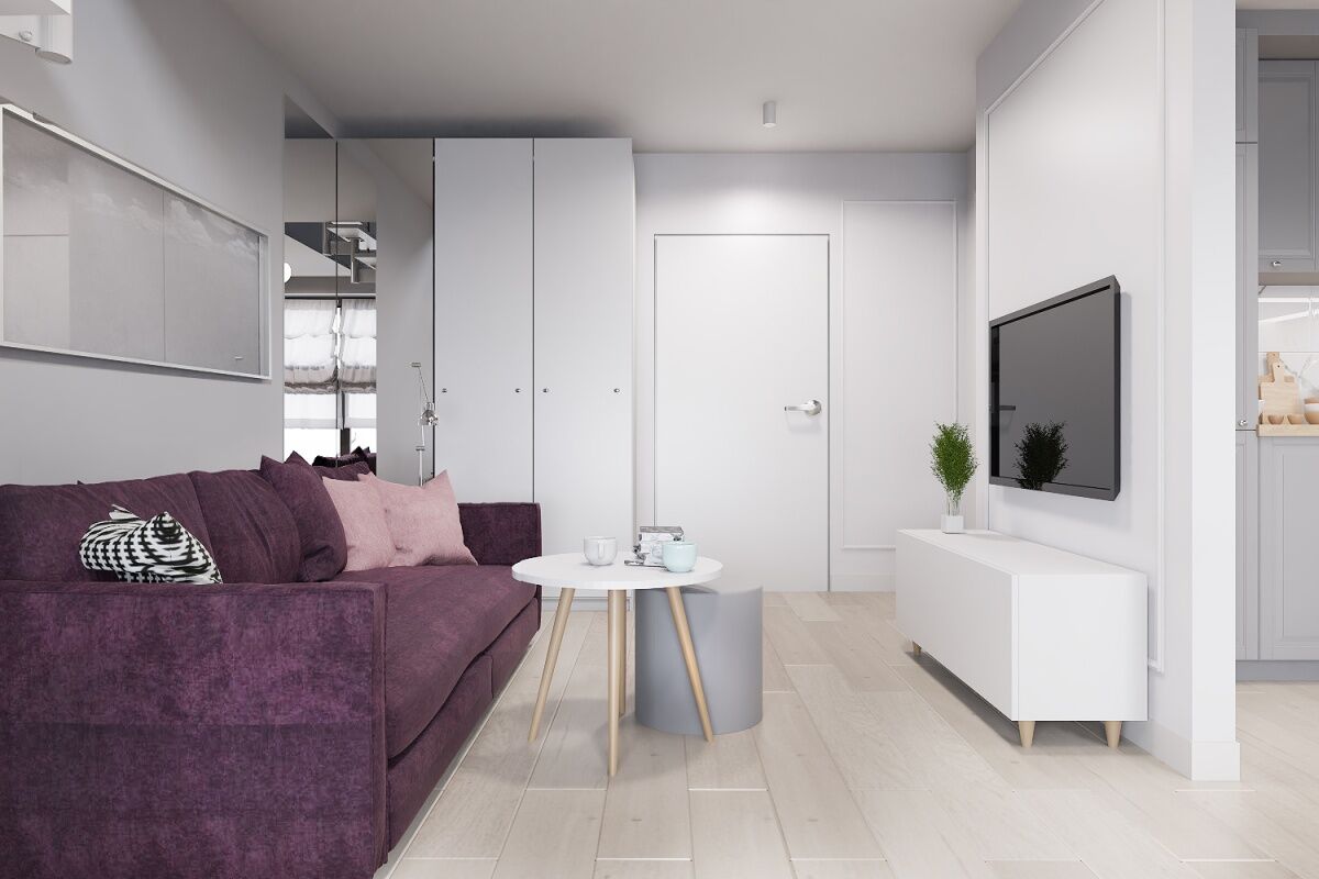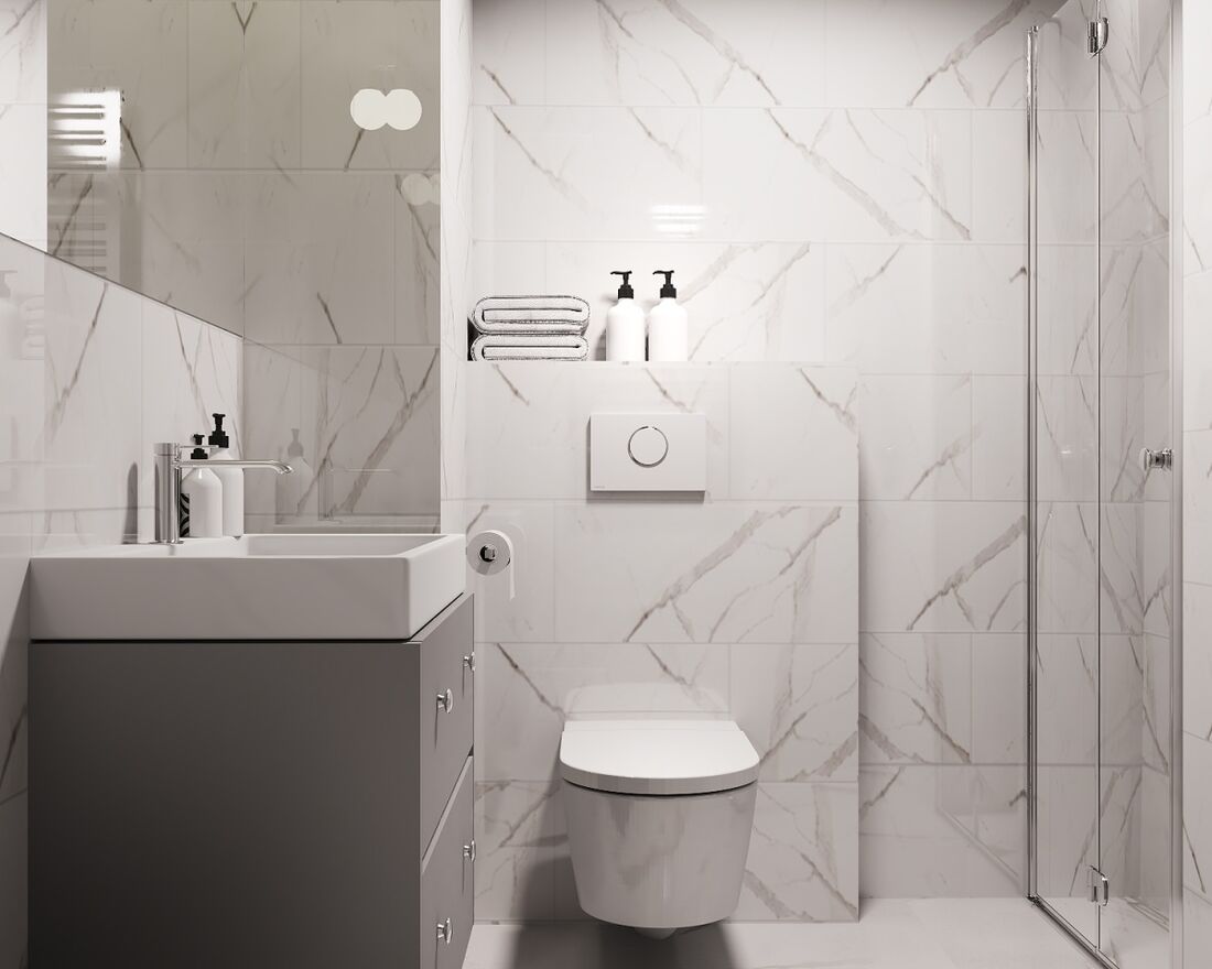 Zdjęcia przedstawiają wizualizację projektu wykończenia mieszkania.
