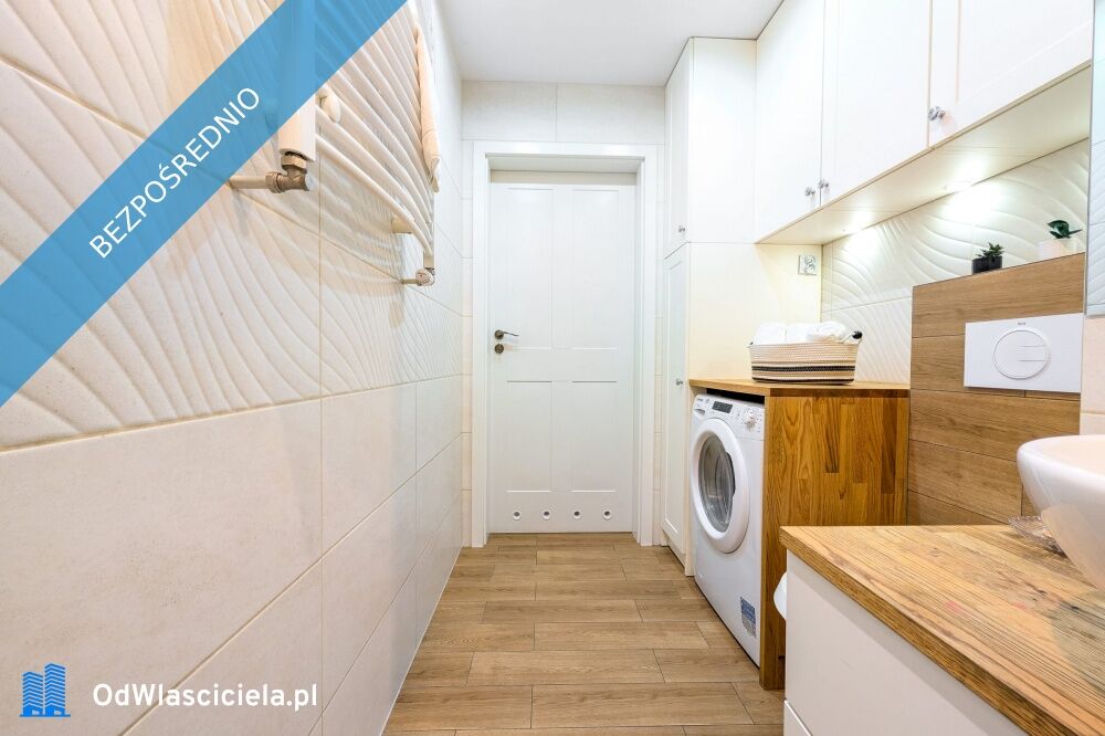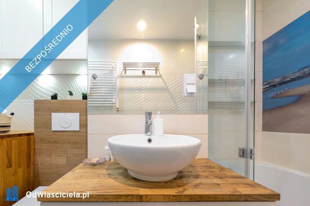Mieszkanie znajduje się na wyższym piętrze budynku z windą. Zostało urządzone przez projektantkę wnętrz – funkcjonalnie, nowocześnie i z dbałością o szczegóły.