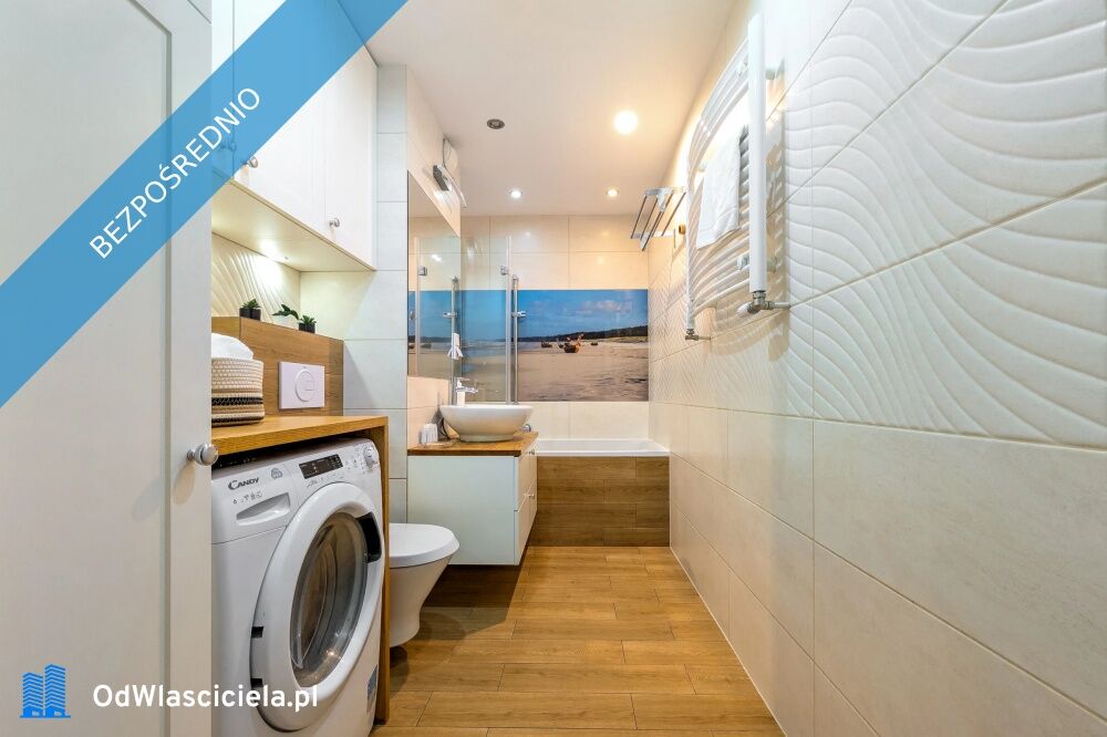 Łazienka z wanną i funkcją prysznica, meble na wymiar, pralka