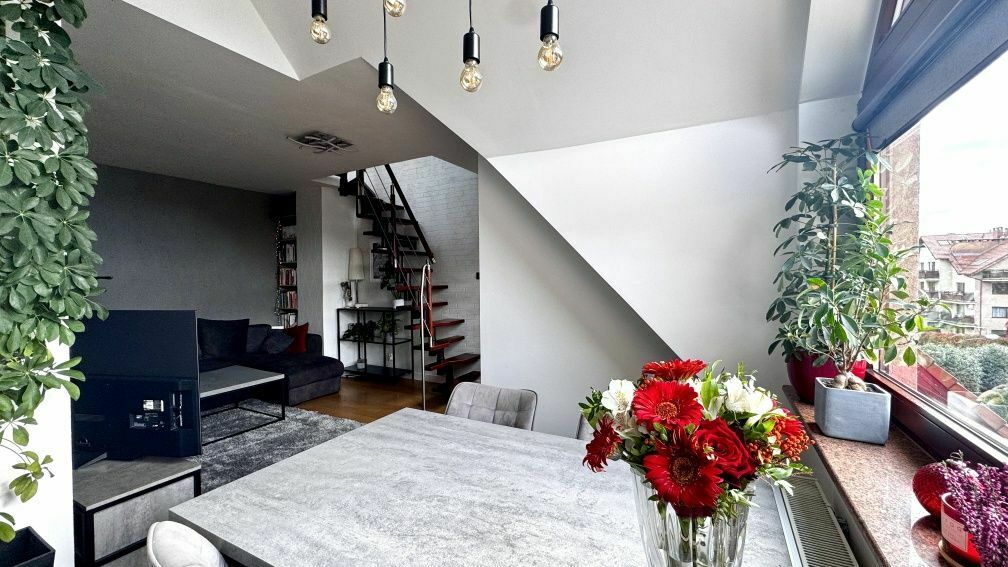 Z przyjemnością prezentuję Państwu ofertę wynajmu niezwykle klimatycznego, dwupoziomowego apartamentu zlokalizowanego na poddaszu. To idealna propozycja dla osób ceniących sobie przestrzeń, jakość oraz unikalny design. Mieszkanie jest jasne, przestronne i wykończone z dbałością o każdy detal.Apartament jest w pełni umeblowany i gotowy do wprowadzenia. Składa się z dwóch poziomów, które oferują funkcjonalny podział na strefę dzienną i prywatną.