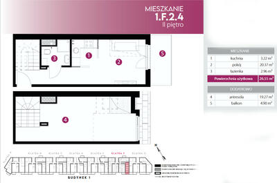 Mieszkanie atrialne, dwukondygnacyjne o powierzchni łącznej 81,49m2 + ogród 16,38m2 +taras 20,71m2. Wyjątkowo ...