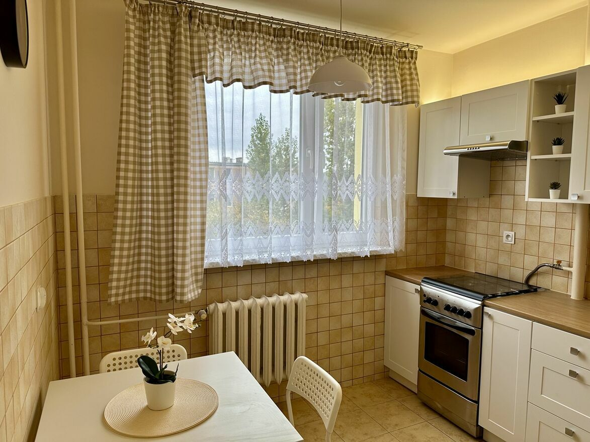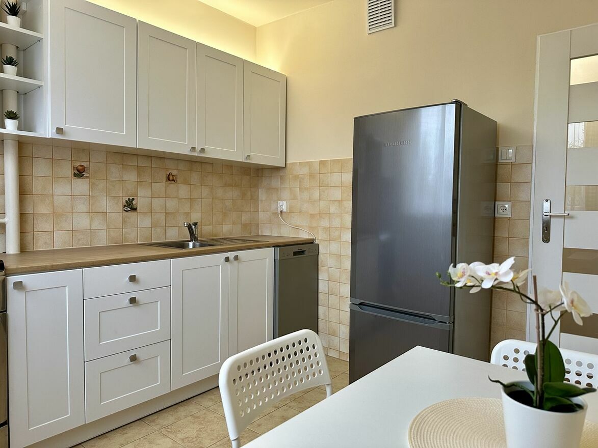 • Mieszkanie w pełni umeblowane i wyposażone w sprzęt AGD (zmywarka, lodówka, kuchenka gazowa z piekarnikiem elektrycznym, pralka)