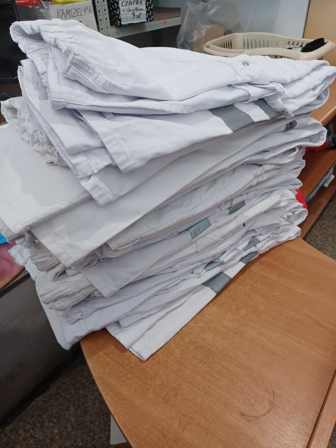 Spodnie robocze pas białe ,ogrodniczki robocze białe .Różne rozmiary .Duży wybór .Odzież robocza używana w dobrym stanie .Cena 40 zł/szt .Także inna odzież robocza używana w dużym wyborze. W ciągłej sprzedaży. Oferujemy także odzież i obuwie robocze nowe ,art bhp, czyściwa bawełniane warsztatowe .Wrocław ,ul Sępa Szarzyńskiego 82 .Czynne od godziny 9 do 16 ,w soboty do 14.Tel 601 - pokaż numer telefonu - .Sprawdź zainteresowanie tym ogłoszeniem