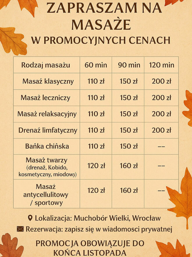 Dzień dobry, jestem doświadczonym technikiem masażu i prowadzę gabinet domowy. Z przyjemnością zapraszam na profesjonalne masaże.Oferuję masaże: