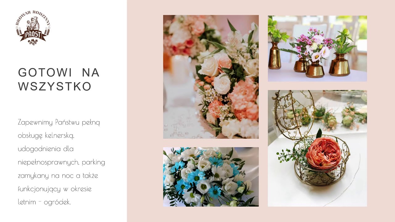 Przygotowania do Pierwszej Komunii Świętej wymagają wiele czasu. Jest to jedno z pierwszych wydarzeń, które wpływa na dalsze życie. Z tego powodu rodzicom zależy, aby wszystko przebiegało według określonego wcześniej planu.Browar PROST oferuje organizację komunii w restauracji. Każdy aspekt przyjęcia komunijnego jest dopracowany i ustalany z klientem. Wystrój Browaru, choć na co dzień utrzymywany w stylu industrialnym, może przyjąć dowolną aranżację. Przygotujemy dekoracje i odpowiednio ustawimy stoły - wszystko według życzeń gości. Do wyboru są sale na kameralne przyjęcia do 20 osób oraz większa sala na komunię. Browar PROST posiada własny parking. Zazwyczaj Pierwsza Komunia Święta przypada na wiosnę, dzięki temu możemy zorganizować atrakcje na świeżym powietrzu. Posiadamy ogródek, do którego możemy przenieść przyjęcie, a nawet mamy miejsce na postawienie dmuchanego pałacu! W przypadku chęci poznania historii browarnictwa oraz charakterystyki produkowanych na miejscu piw, oferujemy wycieczkę po Browarze PROST, prowadzoną przez naszego piwowara. Menu komunijne przygotowywane jest przez doświadczonych kucharzy, którzy proponują dania kuchni polskiej, bawarskiej, a także potrawy wegetariańskie i inne, spersonalizowane pod konkretne gusta. W razie przedłużającego się zakazu organizacji imprez okolicznościowych, zapewniamy catering komunijny z odbiorem własnym lub dowozem.