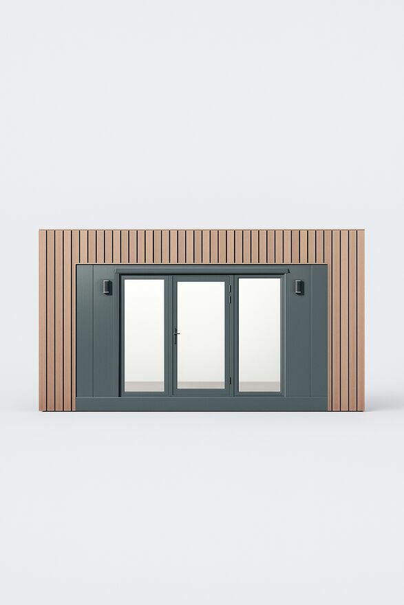 • zewnętrzna elewacja wykonana z lameli w kolorze dębu bielonego