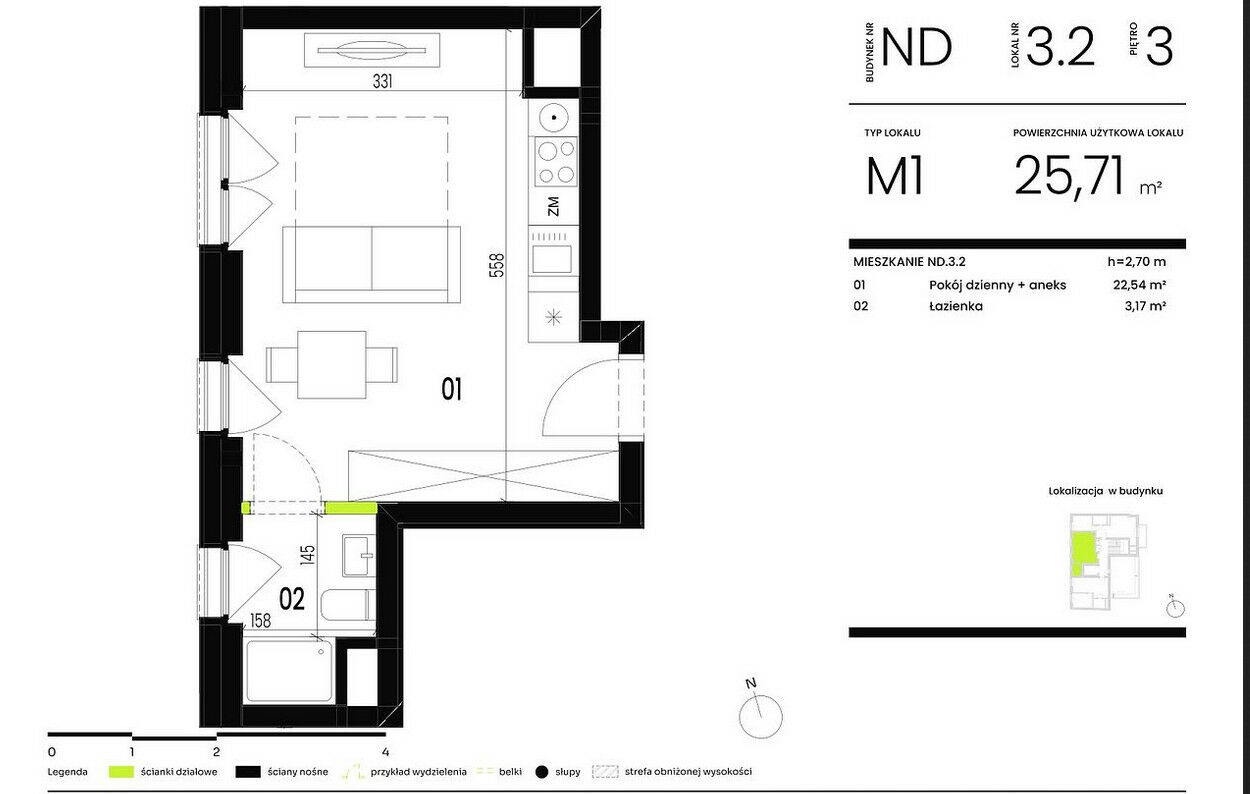 Zapraszam do zakupu wyjątkowych mieszkań w topowej lokalizacji. Inwestycja zlokalizowana jest w ścisłym centrum tętniącego życiem miasta, zaledwie 10 minut od Parku Staromiejskiego, 12 minut od wrocławskiego Rynku i 15 minut od Opery Wrocławskiej czy kilku znanych teatrów. Przemyślana architektura sprawia, że projekt doskonale wpisuje się w okoliczną tkankę miejską. Bliskość szkół, sklepów, restauracji, łatwy dostęp do rozbudowanej sieci transportu publicznego oraz szerokiej oferty kulturalnej Wrocławia sprawiają, że to idealna odpowiedź na potrzeby aktywnych wymagających mieszkańców Wrocławia. Projekt zakładający kompleksową rewitalizację dwóch zabytkowych kamienic w centrum miasta. Powstanie tu wielowymiarowa, innowacyjna przestrzeń miejska - ambitne przedsięwzięcie będące odpowiedzią na rosnące potrzeby współczesnego świata. Przez harmonijne połączenie nowoczesności z historią, projekt stanie się symbolem zupełnie nowego podejścia do miejskiego życia.Prezentowane mieszkanie ma powierzchnię 25,71m2 i znajduje się na trzecim piętrze w pięciokondygnacyjnym budynku a jego główne cechy to- salon z aneksem kuchennym o powierzchni 22,54m2, łazienka o powierzchni 3,17m2.