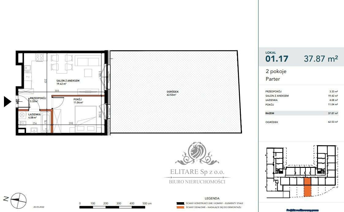 Proponowane mieszkanie ma 37,87 m2, a jego główne cechy to: