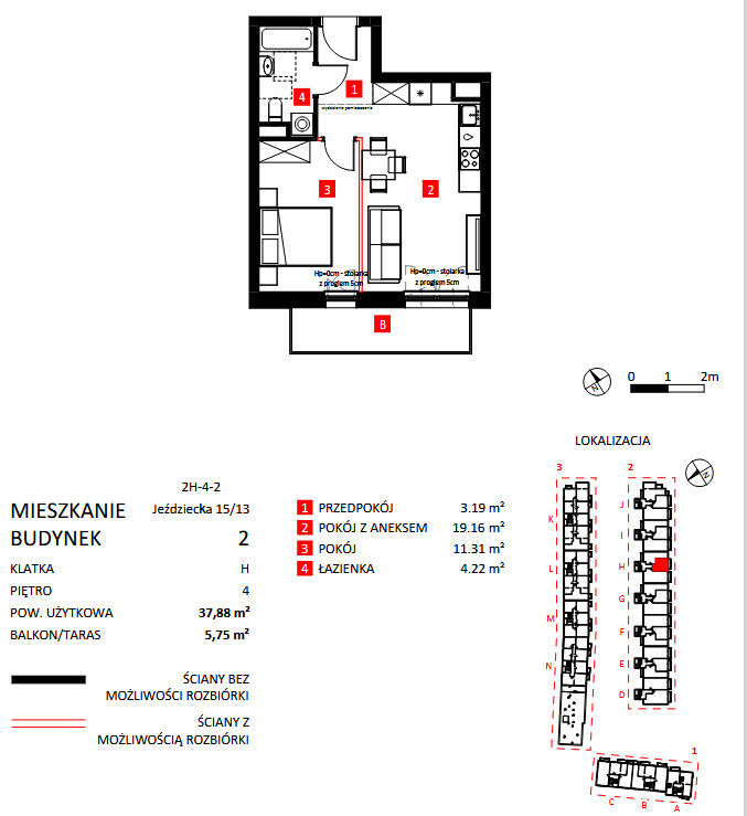 Serdecznie zapraszam do zakupu pięknych mieszkań w bardzo dobrej lokalizacji -KLECINA. Kompleks trzech nowoczesnych budynków, w ramach inwestycji, w budynku numer 1 i 2 powstały m.in. 154 mieszkania o wysokim standardzie. W tej szerokiej ofercie są lokale z atrakcyjnymi tarasami i balkonami, o różnorodnej powierzchni oraz liczbie pokoi. Bliskość parków, Toru Wyścigów Konnych, jednej z głównych arterii komunikacyjnych Wrocławia oraz dostępność infrastruktury miejskiej sprawiają, że jest to dobre i wygodne miejsce do życia. Starannie przemyślana koncepcja architektoniczna sprawia, że to zarówno wspaniałe miejsce do zamieszkania, jak i doskonała przestrzeń do prowadzenia biznesu. Liczna grupa potencjalnych klientów oraz prestiżowa lokalizacja sprawiają, że zakup lub wynajem lokalu usługowego w ramach inwestycji to duża szansa na sukces działalności.Prezentowane mieszkanie ma powierzchnię 37,88m2 i znajduje się na czwartym piętrze w siedmiokonygnacyjnym budynku a jego główne cechy to- salon z aneksem kuchennym o powierzchni 19,16m2 z wyjściem na duży balkon o powierzchni 5,75m2, sypialnia o powierzchni 11,31m2, łazienka o powierzchni 4,22m2, przedpokój o powierzchni 3,19m2.