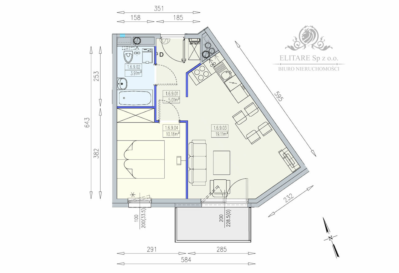 Powierzchnia mieszkania: 38,21 m2 + balkon 4,26m2