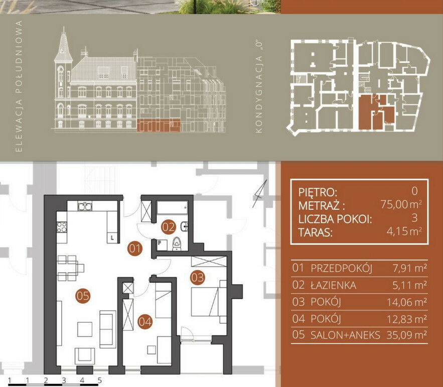 Piękne, duże Mieszkanie o pow. 74,67m2 znajduje się na parterze w 4 piętrowym budynku z windą. Klasyczna, część przedwojennych Browarów Wrocławskich połączona z super nowoczesną częścią – budynek historyczny jest po całkowitej i bardzo szczegółowej rewitalizacji, a jego nowoczesna cząstka również jest już GOTOWA i odebrana do użytkowania.Proponowane mieszkanie znajduje się na parterze i ma powierzchnię 74,67m2 i składa się z salonu o powierzchni 35,09m2 z aneksem kuchennym, z salonu wyjście na przestronny ogród, dwóch sypialni o powierzchniach 14,08m2, 12,83m2, przedpokoju oraz łazienki o powierzchni 5,11m2. Dużym plusem inwestycji jest też ogrzewanie miejskie, bliskość Browarów Wrocławskich i komunikacja miejska tuż obok znajduje się przystanek tramwajowy.