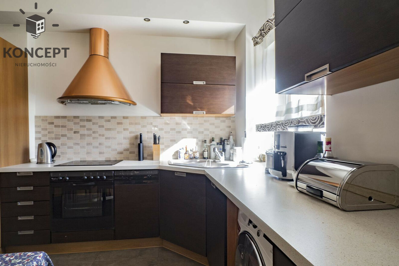 Mieszkanie w pełni umeblowane oraz wyposażone wysokiej jakości meblami i sprzętem: telewizor, płyta indukcyjna, zmywarka, lodówka, okap, piekarnik, pralka.
