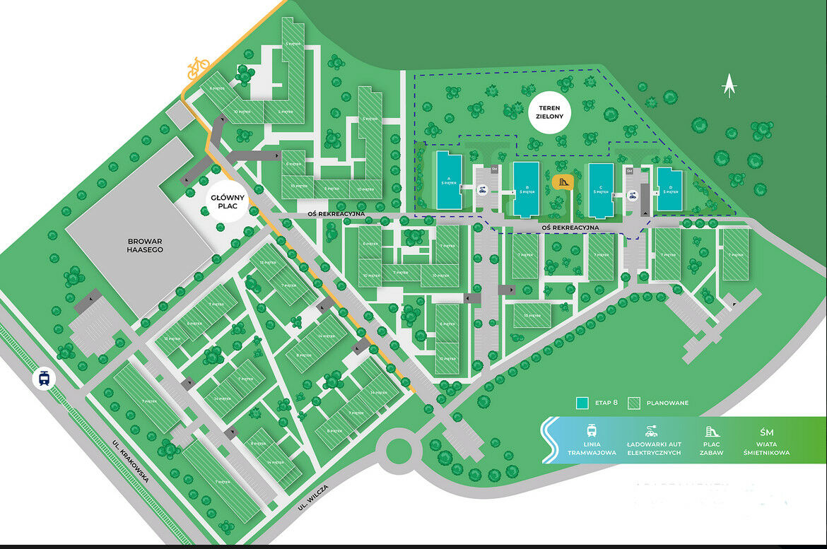 Osiedle realizowane we Wrocławskiej dzielnicy Krzyki, na terenach obejmujących historyczne zabudowania dawnego browaru E. Haasego. Obszar jest dobrze skomunikowany zarówno z centrum Wrocławia, jak i obwodnicą śródmiejską, a największym walorem lokalizacji jest bliskość rzeki Oławy i położonych nad nią terenów rekreacyjnych.Z myślą o potrzebach przyszłych mieszkańców zróżnicowaliśmy zabudowę - powstaną tu wielkomiejskie, wysokie budynki, nieco niższa zabudowa osiedlowa ze skwerami i parkami kieszeniowymi oraz położona najbliżej rzeki strefa kameralna z niską zabudową. Osiedle w sposób naturalny połączy bliskość Starego Miasta z możliwością oddechu od miejskiego zgiełku. Zastosujemy przyjazne środowisku rozwiązania ekologiczne oraz zadbamy o walory estetyczne wykorzystując materiały wysokiej jakości. Do użytku mieszkańców oddamy Strefę Fitness oraz Kącik Malucha. Każde mieszkanie bez dodatkowych opłat wyposażymy w system Smart House firmy Keemple pozwalający na efektywne gospodarowanie energią oraz kontrolę jej zużycia.