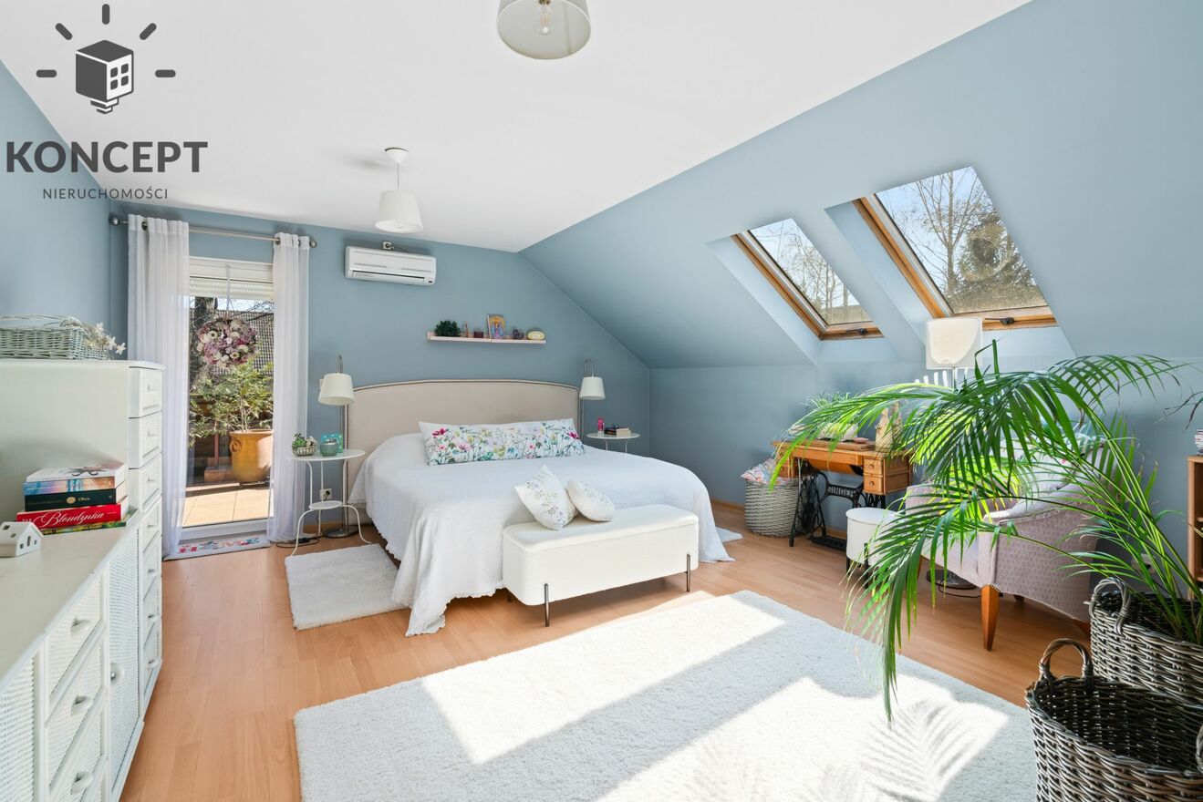 - Duży, ocieplony strych z oknem dachowym