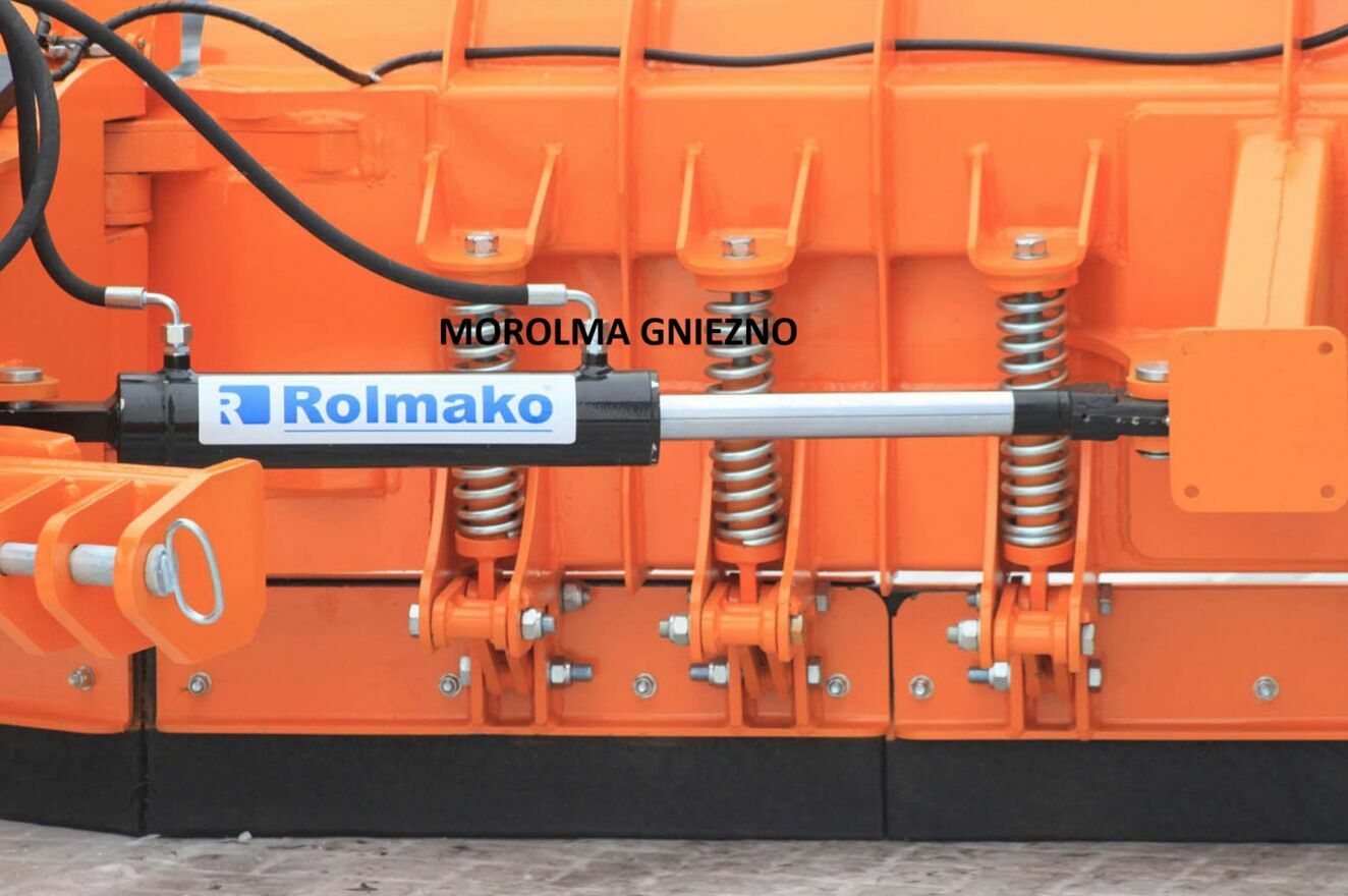 Pług śnieżny ROLMAKO to sprzęt klasy ciężkiej przeznaczony do współpracy z ciągnikiem rolniczym wyposażonym w przedni TUZ II kat. . Stosuje się go do odśnieżania dróg publicznych, parkingów oraz wszystkich utwardzonych i nieutwardzonych powierzchni drogowych. Wklęsłe wysokie skrzydła pługa nie pozwalają na wypadanie śniegu. Pług bazuje na mocnym centralnym korpusie, do którego zamocowane są skrzydła z hydrauliczną regulacją nastawienia. Konstruktorzy pługa śnieżnego ROLMAKO przy jego budowie wzięli pod uwagę współpracę z ciągnikami dużej mocy do 350 KM. Dzięki zastosowaniu materiałów najwyższej jakości pług ROLMAKO jest twardy i wytrzymały. Centralny sworzeń i istotne połączenia skrzydeł z korpusem centralnym są wyjątkowo mocne, aby wytrzymać częste zmiany pozycji. Skrzydła oraz pozycja lemiesza są skonstruowane tak, aby usunąć śnieg z łatwością, nawet przy niskich prędkościach. Pług śnieżny ROLMAKO zdolny jest przenosić obciążenia czołowe max 12,5 ton. Szerokość maszyny można dostosować tak, aby jak najlepiej dopasować ją do warunków przestrzennych, w jakich będzie pracować. Wydajność, wytrzymałość i wszechstronność to cechy charakterystyczne ekstremalnie mocnych pługów śnieżnych ROLMAKO. Pług jest przeznaczony głównie do użytku miejskiego, gdzie wąskie uliczki i parkingi są trudne do odśnieżania ze względu na zaparkowane pojazdy. Wydajność, trwałość i łatwość użytkowania - wszystko to pozwala na oszczędność czasu oraz ograniczenie kosztów związanych z usuwaniem śniegu. Ten pług to specjalista od zimowego utrzymania dróg, parkingów i placów manewrowych .