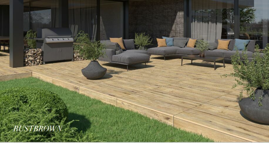 Płytki gresowe drewnopodobne do zastosowań zewnętrznych zarówno na podłogi, tarasy, balkony, schody jak i ścieżki ogrodowe, chodniki, podjazdy, niecki basenowe, obrzeża....KOLEKCJA: GARDEN WOOD RUSTBROWN - GATUNEK I